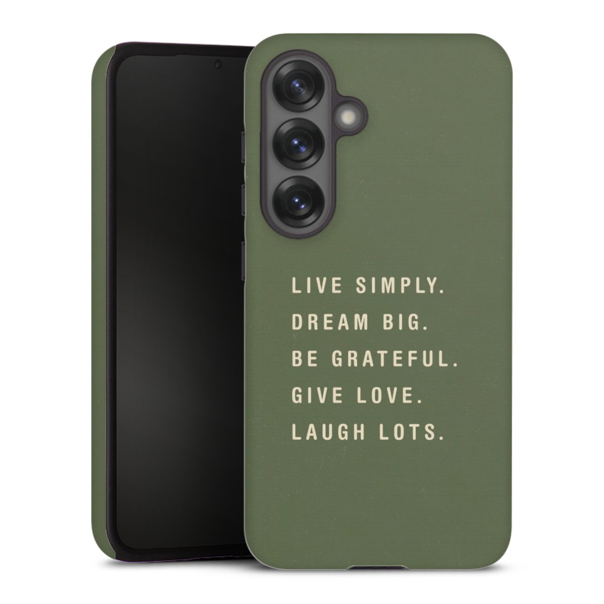 Bei dieser Handyhülle nutzen wird den besonders langlebigen Sublimationsdruck. Dieses raffinierte Druckverfahren sticht durch sein hochwertiges, gestochen scharfes Druckbild in brillanten Farben hervor. Der Druckbereich umfasst die ganze Hartschale inklusive der Ecken und Kanten, lediglich der Silikon-Einleger bleibt einfarbig schwarz. Wähle für Dein Design entweder eines unserer exklusiven Shop-Motive, oder werde kreativ und gestalte Dein Wunschdesign zum Beispiel mit Fotos und Overlays selbst.