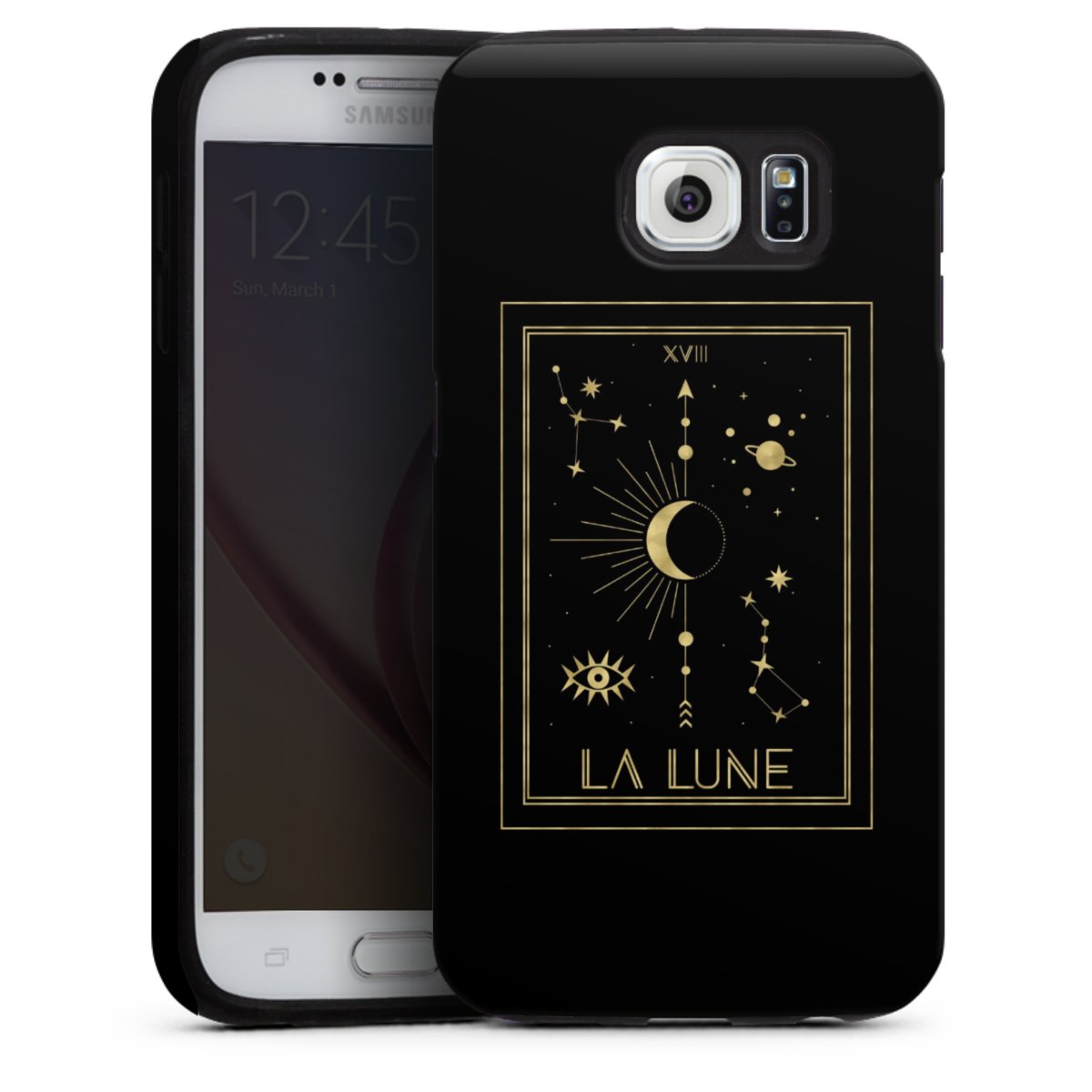 Bei dieser Handyhülle nutzen wird den besonders langlebigen Sublimationsdruck. Dieses raffinierte Druckverfahren sticht durch sein hochwertiges, gestochen scharfes Druckbild in brillanten Farben hervor. Der Druckbereich umfasst die ganze Hartschale inklusive der Ecken und Kanten, lediglich der Silikon-Einleger bleibt einfarbig schwarz. Wähle für Dein Design entweder eines unserer exklusiven Shop-Motive, oder werde kreativ und gestalte Dein Wunschdesign zum Beispiel mit Fotos und Overlays selbst.