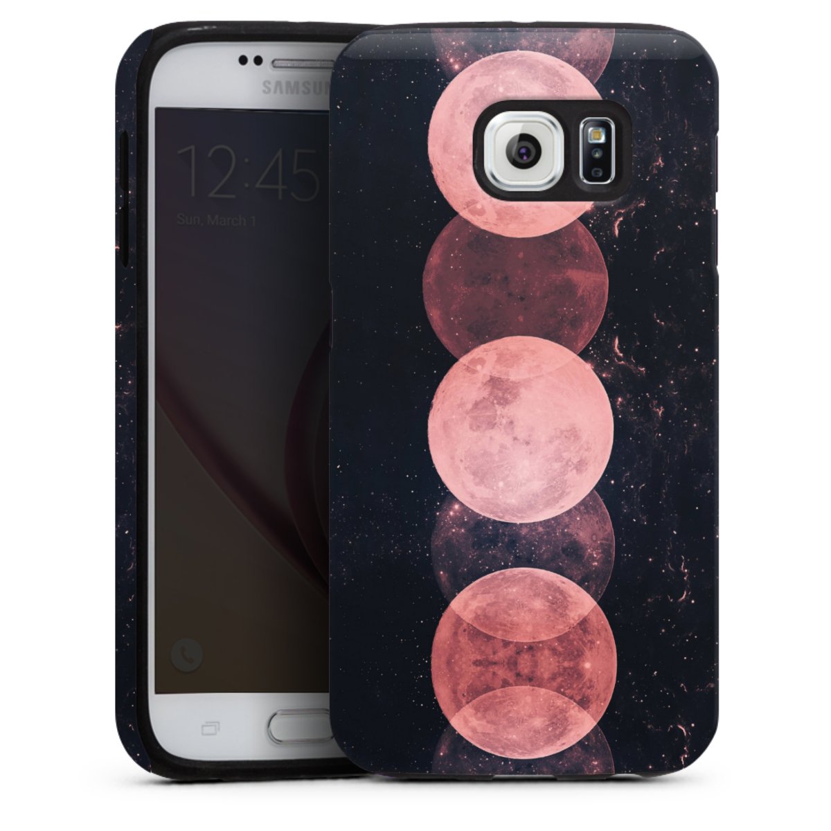 Bei dieser Handyhülle nutzen wird den besonders langlebigen Sublimationsdruck. Dieses raffinierte Druckverfahren sticht durch sein hochwertiges, gestochen scharfes Druckbild in brillanten Farben hervor. Der Druckbereich umfasst die ganze Hartschale inklusive der Ecken und Kanten, lediglich der Silikon-Einleger bleibt einfarbig schwarz. Wähle für Dein Design entweder eines unserer exklusiven Shop-Motive, oder werde kreativ und gestalte Dein Wunschdesign zum Beispiel mit Fotos und Overlays selbst.