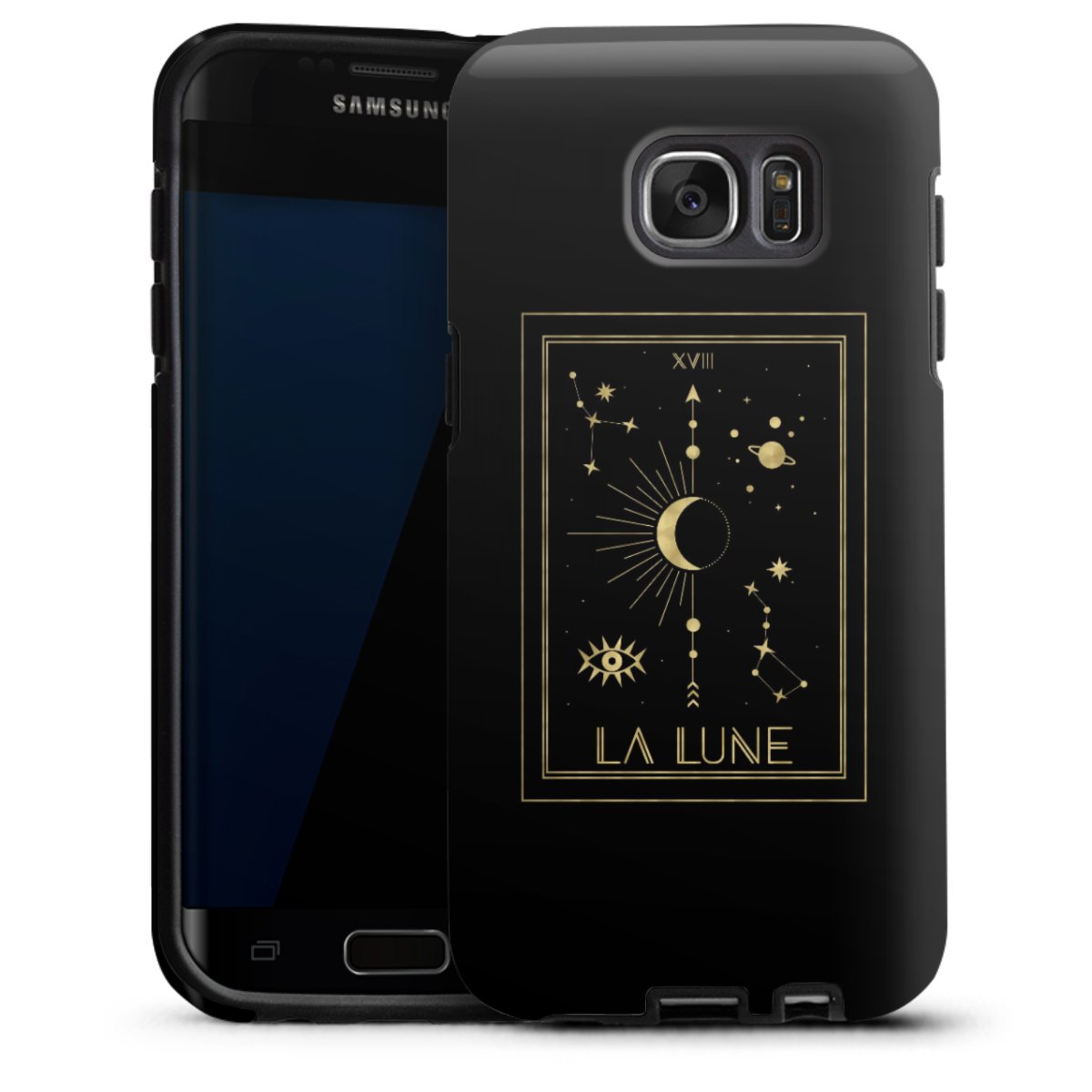 Bei dieser Handyhülle nutzen wird den besonders langlebigen Sublimationsdruck. Dieses raffinierte Druckverfahren sticht durch sein hochwertiges, gestochen scharfes Druckbild in brillanten Farben hervor. Der Druckbereich umfasst die ganze Hartschale inklusive der Ecken und Kanten, lediglich der Silikon-Einleger bleibt einfarbig schwarz. Wähle für Dein Design entweder eines unserer exklusiven Shop-Motive, oder werde kreativ und gestalte Dein Wunschdesign zum Beispiel mit Fotos und Overlays selbst.