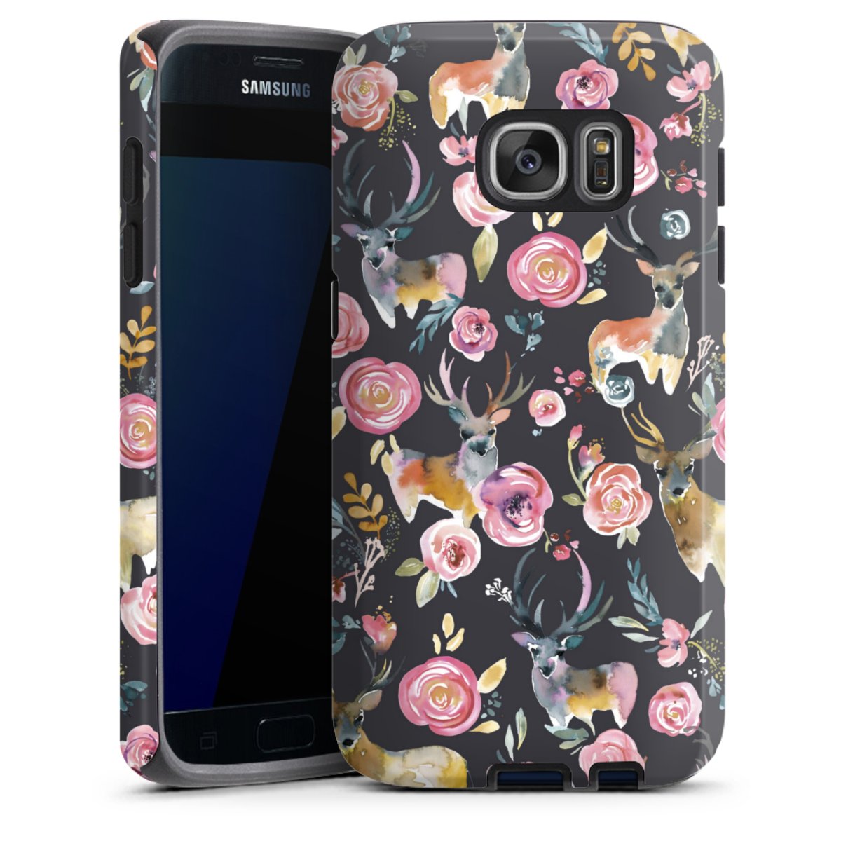 Bei dieser Handyhülle nutzen wird den besonders langlebigen Sublimationsdruck. Dieses raffinierte Druckverfahren sticht durch sein hochwertiges, gestochen scharfes Druckbild in brillanten Farben hervor. Der Druckbereich umfasst die ganze Hartschale inklusive der Ecken und Kanten, lediglich der Silikon-Einleger bleibt einfarbig schwarz. Wähle für Dein Design entweder eines unserer exklusiven Shop-Motive, oder werde kreativ und gestalte Dein Wunschdesign zum Beispiel mit Fotos und Overlays selbst.