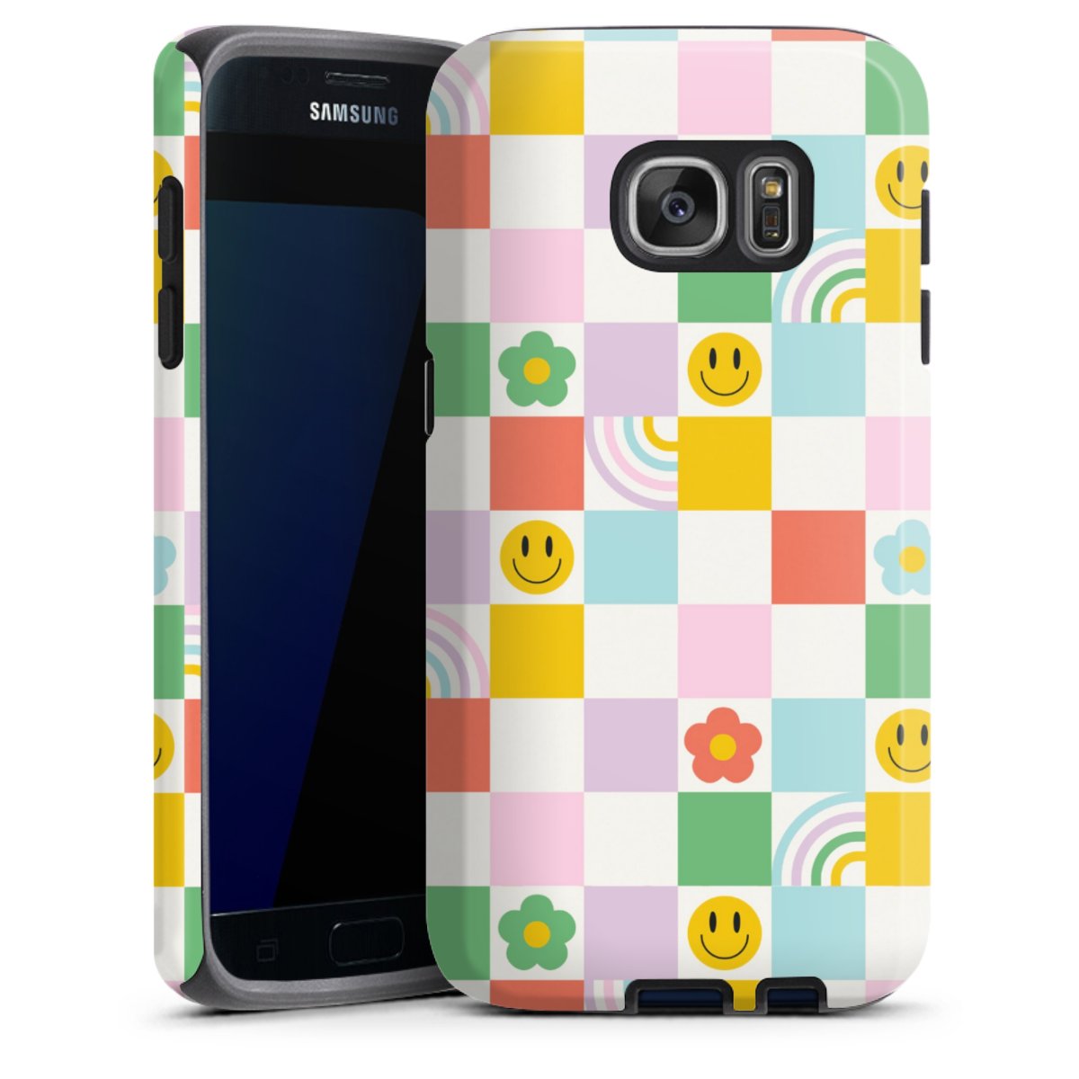 Bei dieser Handyhülle nutzen wird den besonders langlebigen Sublimationsdruck. Dieses raffinierte Druckverfahren sticht durch sein hochwertiges, gestochen scharfes Druckbild in brillanten Farben hervor. Der Druckbereich umfasst die ganze Hartschale inklusive der Ecken und Kanten, lediglich der Silikon-Einleger bleibt einfarbig schwarz. Wähle für Dein Design entweder eines unserer exklusiven Shop-Motive, oder werde kreativ und gestalte Dein Wunschdesign zum Beispiel mit Fotos und Overlays selbst.