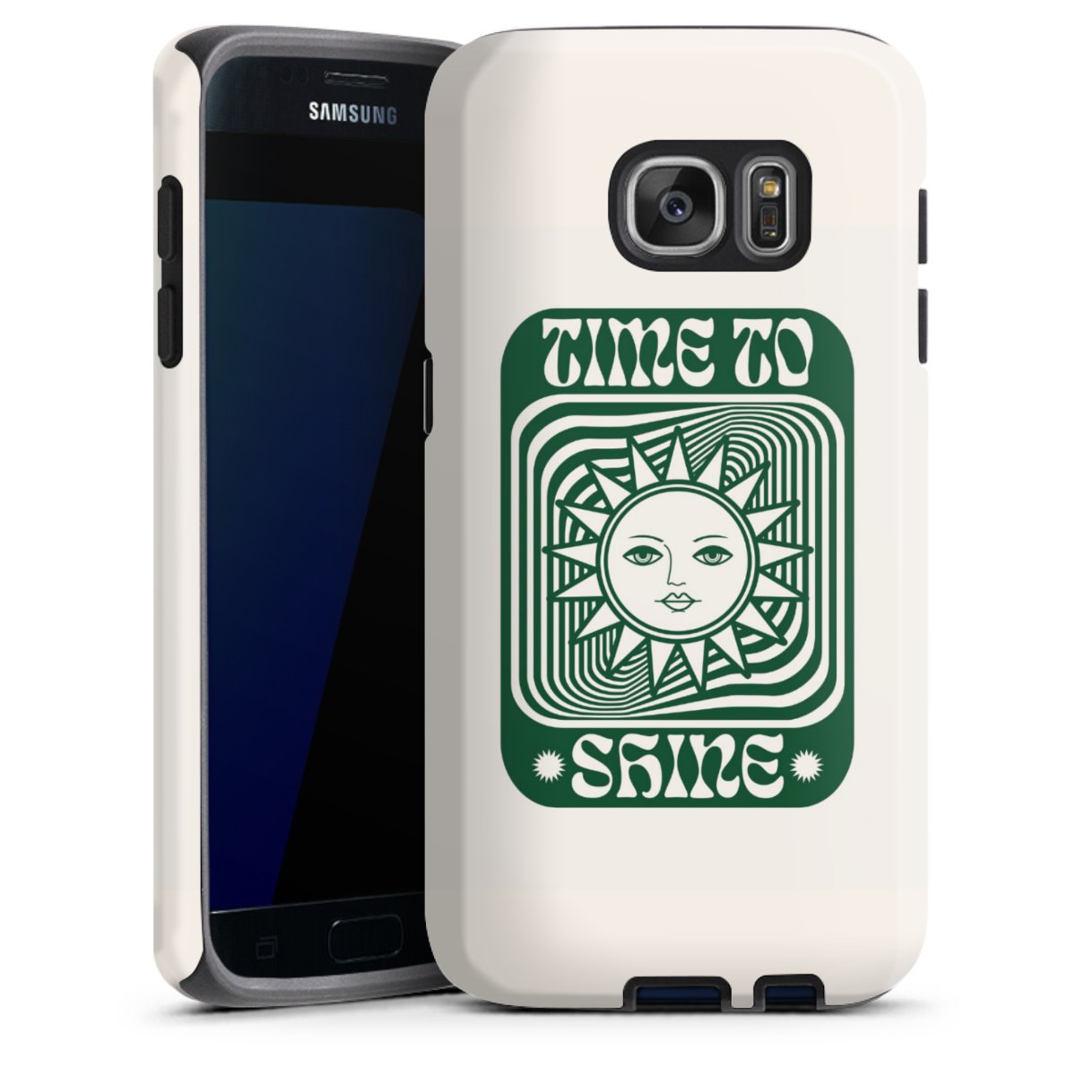 Bei dieser Handyhülle nutzen wird den besonders langlebigen Sublimationsdruck. Dieses raffinierte Druckverfahren sticht durch sein hochwertiges, gestochen scharfes Druckbild in brillanten Farben hervor. Der Druckbereich umfasst die ganze Hartschale inklusive der Ecken und Kanten, lediglich der Silikon-Einleger bleibt einfarbig schwarz. Wähle für Dein Design entweder eines unserer exklusiven Shop-Motive, oder werde kreativ und gestalte Dein Wunschdesign zum Beispiel mit Fotos und Overlays selbst.