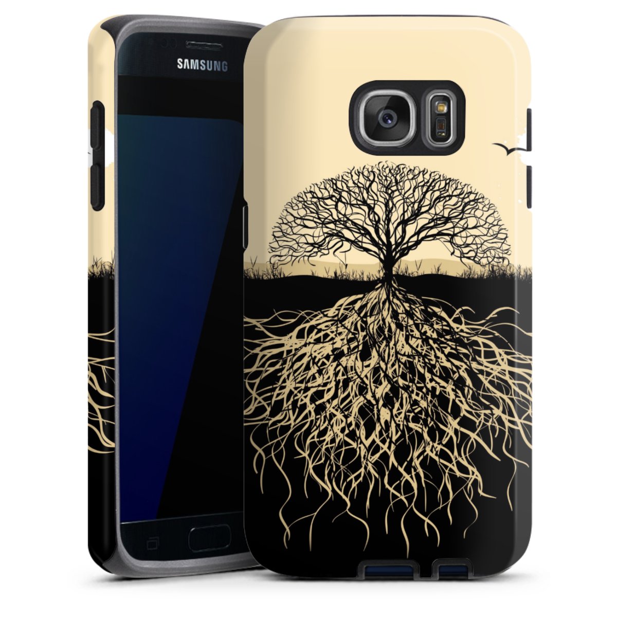 Bei dieser Handyhülle nutzen wird den besonders langlebigen Sublimationsdruck. Dieses raffinierte Druckverfahren sticht durch sein hochwertiges, gestochen scharfes Druckbild in brillanten Farben hervor. Der Druckbereich umfasst die ganze Hartschale inklusive der Ecken und Kanten, lediglich der Silikon-Einleger bleibt einfarbig schwarz. Wähle für Dein Design entweder eines unserer exklusiven Shop-Motive, oder werde kreativ und gestalte Dein Wunschdesign zum Beispiel mit Fotos und Overlays selbst.