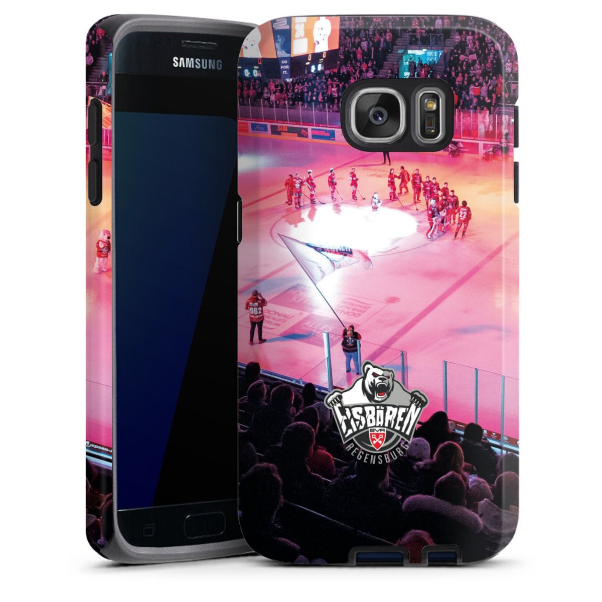 Bei dieser Handyhülle nutzen wird den besonders langlebigen Sublimationsdruck. Dieses raffinierte Druckverfahren sticht durch sein hochwertiges, gestochen scharfes Druckbild in brillanten Farben hervor. Der Druckbereich umfasst die ganze Hartschale inklusive der Ecken und Kanten, lediglich der Silikon-Einleger bleibt einfarbig schwarz. Wähle für Dein Design entweder eines unserer exklusiven Shop-Motive, oder werde kreativ und gestalte Dein Wunschdesign zum Beispiel mit Fotos und Overlays selbst.