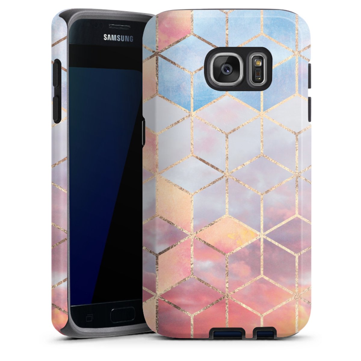 Bei dieser Handyhülle nutzen wird den besonders langlebigen Sublimationsdruck. Dieses raffinierte Druckverfahren sticht durch sein hochwertiges, gestochen scharfes Druckbild in brillanten Farben hervor. Der Druckbereich umfasst die ganze Hartschale inklusive der Ecken und Kanten, lediglich der Silikon-Einleger bleibt einfarbig schwarz. Wähle für Dein Design entweder eines unserer exklusiven Shop-Motive, oder werde kreativ und gestalte Dein Wunschdesign zum Beispiel mit Fotos und Overlays selbst.