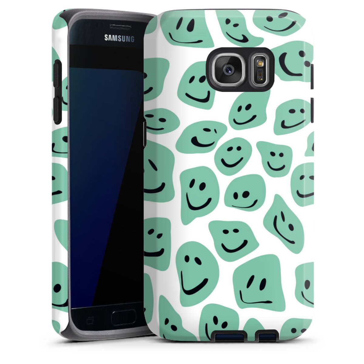 Bei dieser Handyhülle nutzen wird den besonders langlebigen Sublimationsdruck. Dieses raffinierte Druckverfahren sticht durch sein hochwertiges, gestochen scharfes Druckbild in brillanten Farben hervor. Der Druckbereich umfasst die ganze Hartschale inklusive der Ecken und Kanten, lediglich der Silikon-Einleger bleibt einfarbig schwarz. Wähle für Dein Design entweder eines unserer exklusiven Shop-Motive, oder werde kreativ und gestalte Dein Wunschdesign zum Beispiel mit Fotos und Overlays selbst.