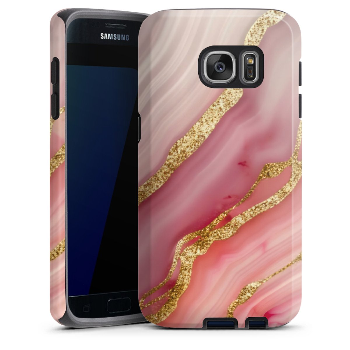 Bei dieser Handyhülle nutzen wird den besonders langlebigen Sublimationsdruck. Dieses raffinierte Druckverfahren sticht durch sein hochwertiges, gestochen scharfes Druckbild in brillanten Farben hervor. Der Druckbereich umfasst die ganze Hartschale inklusive der Ecken und Kanten, lediglich der Silikon-Einleger bleibt einfarbig schwarz. Wähle für Dein Design entweder eines unserer exklusiven Shop-Motive, oder werde kreativ und gestalte Dein Wunschdesign zum Beispiel mit Fotos und Overlays selbst.