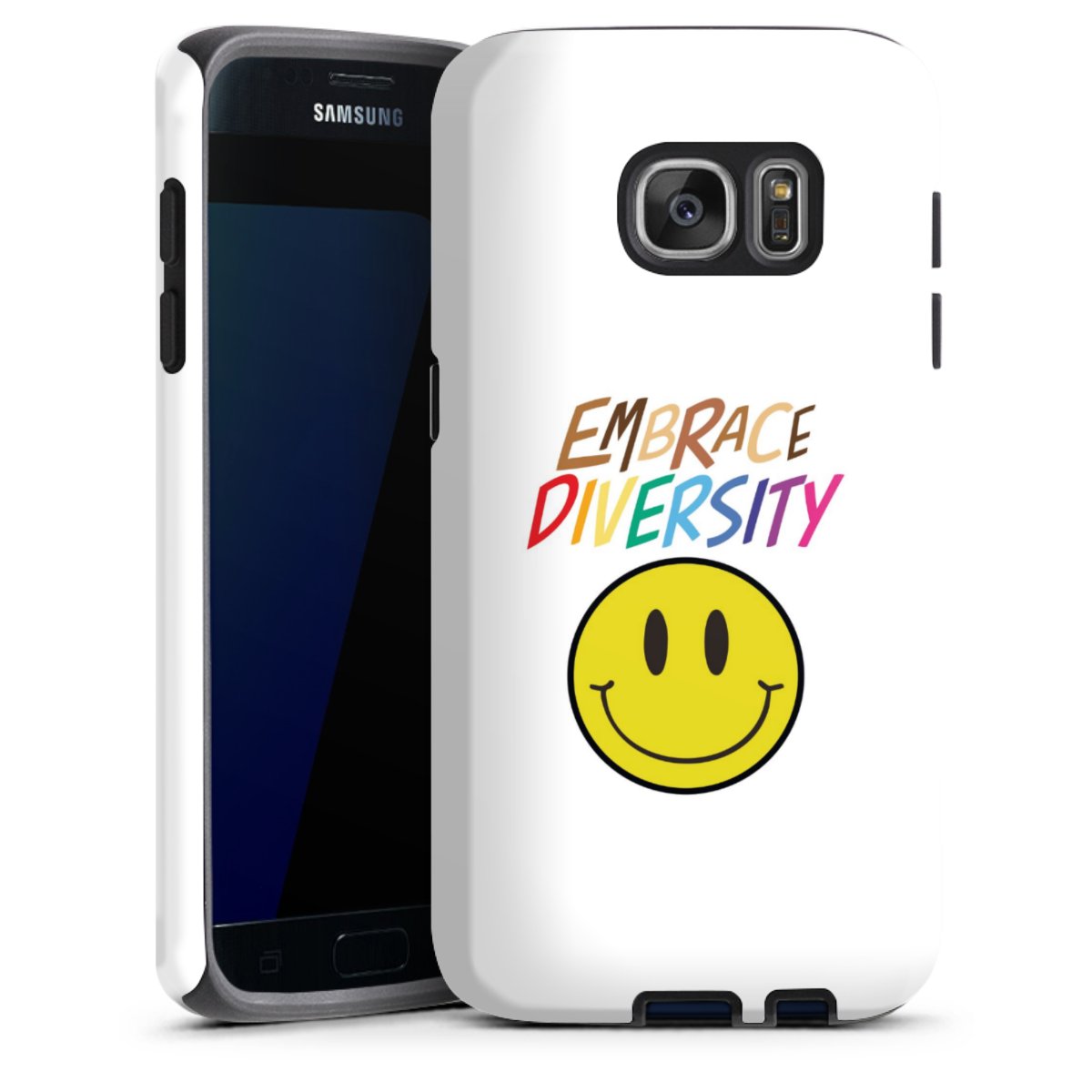 Bei dieser Handyhülle nutzen wird den besonders langlebigen Sublimationsdruck. Dieses raffinierte Druckverfahren sticht durch sein hochwertiges, gestochen scharfes Druckbild in brillanten Farben hervor. Der Druckbereich umfasst die ganze Hartschale inklusive der Ecken und Kanten, lediglich der Silikon-Einleger bleibt einfarbig schwarz. Wähle für Dein Design entweder eines unserer exklusiven Shop-Motive, oder werde kreativ und gestalte Dein Wunschdesign zum Beispiel mit Fotos und Overlays selbst.