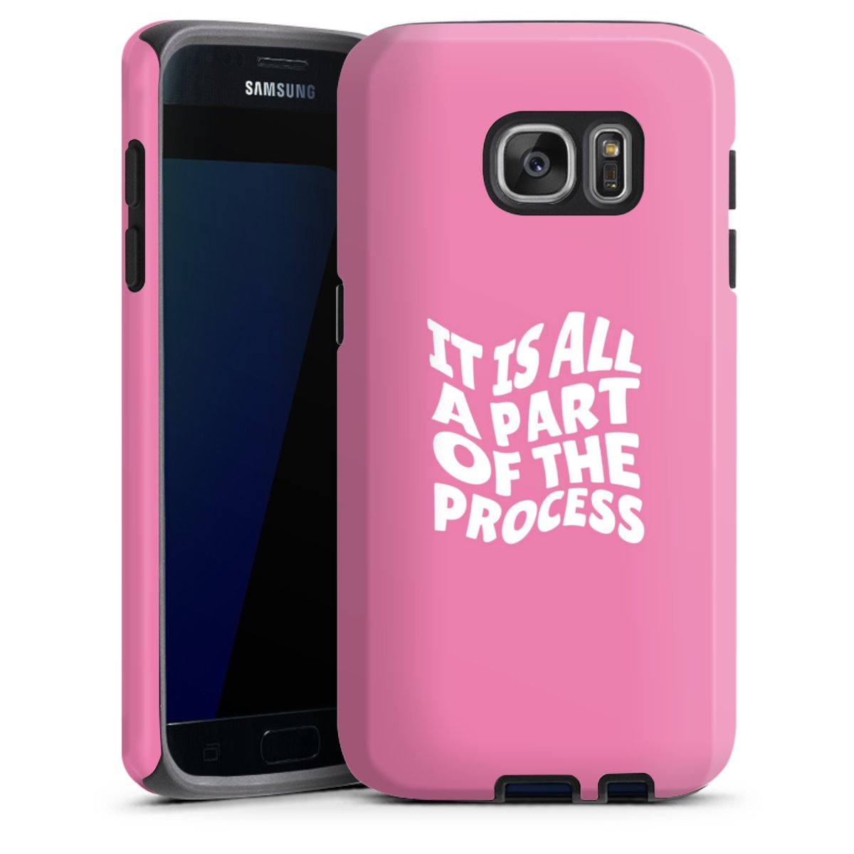 Bei dieser Handyhülle nutzen wird den besonders langlebigen Sublimationsdruck. Dieses raffinierte Druckverfahren sticht durch sein hochwertiges, gestochen scharfes Druckbild in brillanten Farben hervor. Der Druckbereich umfasst die ganze Hartschale inklusive der Ecken und Kanten, lediglich der Silikon-Einleger bleibt einfarbig schwarz. Wähle für Dein Design entweder eines unserer exklusiven Shop-Motive, oder werde kreativ und gestalte Dein Wunschdesign zum Beispiel mit Fotos und Overlays selbst.