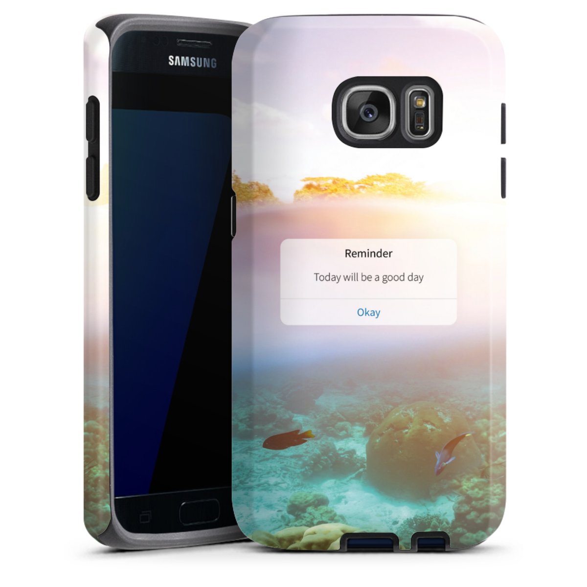 Bei dieser Handyhülle nutzen wird den besonders langlebigen Sublimationsdruck. Dieses raffinierte Druckverfahren sticht durch sein hochwertiges, gestochen scharfes Druckbild in brillanten Farben hervor. Der Druckbereich umfasst die ganze Hartschale inklusive der Ecken und Kanten, lediglich der Silikon-Einleger bleibt einfarbig schwarz. Wähle für Dein Design entweder eines unserer exklusiven Shop-Motive, oder werde kreativ und gestalte Dein Wunschdesign zum Beispiel mit Fotos und Overlays selbst.