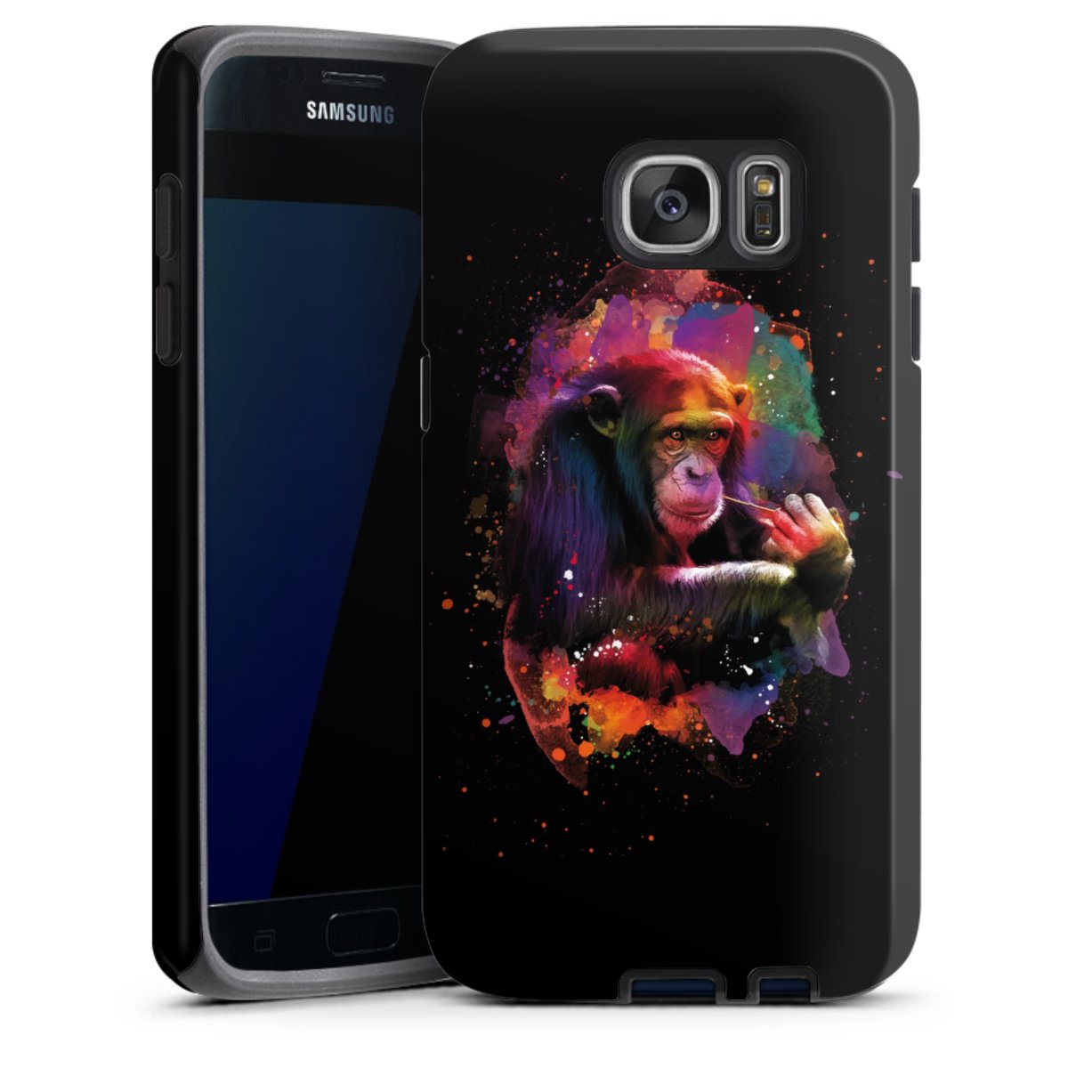 Bei dieser Handyhülle nutzen wird den besonders langlebigen Sublimationsdruck. Dieses raffinierte Druckverfahren sticht durch sein hochwertiges, gestochen scharfes Druckbild in brillanten Farben hervor. Der Druckbereich umfasst die ganze Hartschale inklusive der Ecken und Kanten, lediglich der Silikon-Einleger bleibt einfarbig schwarz. Wähle für Dein Design entweder eines unserer exklusiven Shop-Motive, oder werde kreativ und gestalte Dein Wunschdesign zum Beispiel mit Fotos und Overlays selbst.