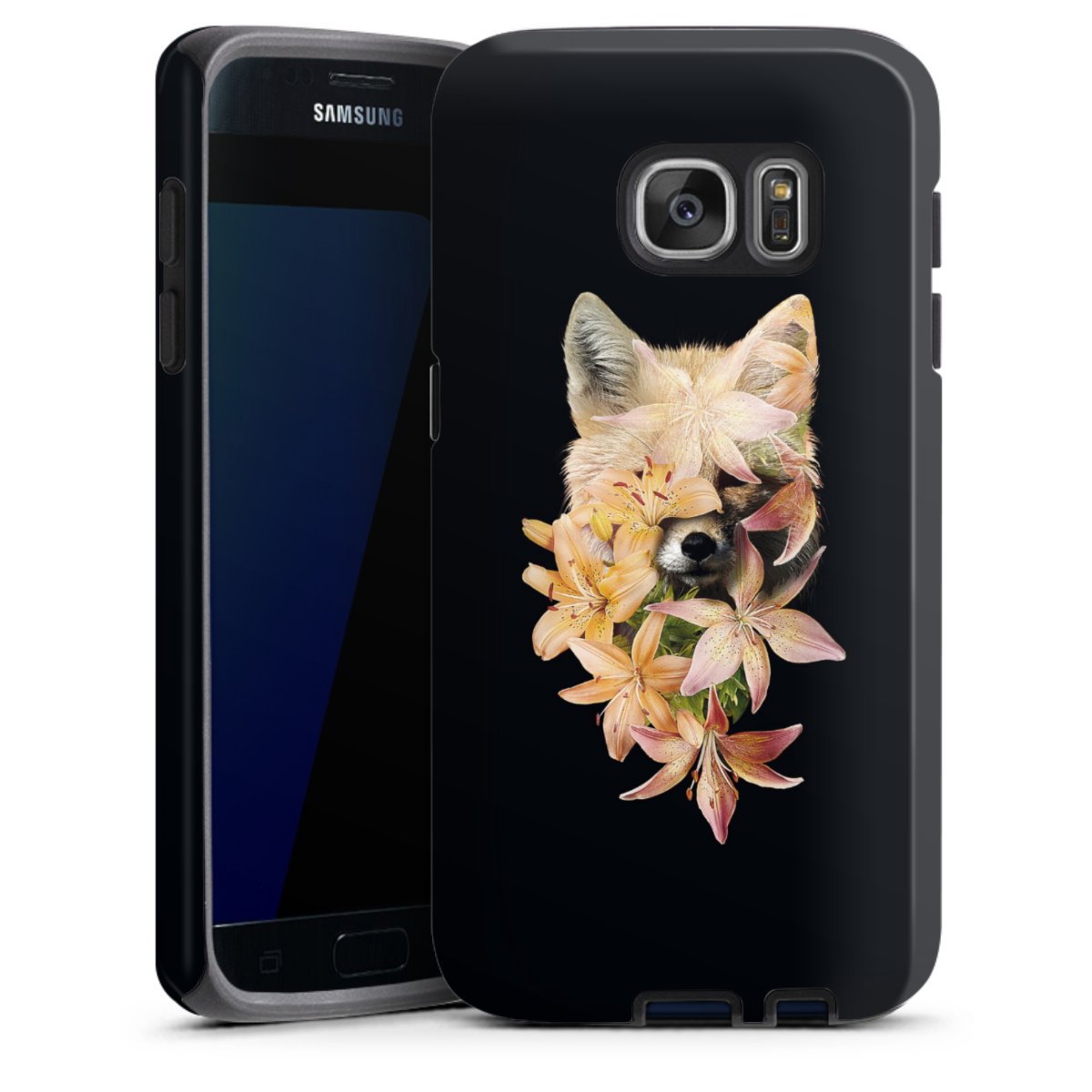 Bei dieser Handyhülle nutzen wird den besonders langlebigen Sublimationsdruck. Dieses raffinierte Druckverfahren sticht durch sein hochwertiges, gestochen scharfes Druckbild in brillanten Farben hervor. Der Druckbereich umfasst die ganze Hartschale inklusive der Ecken und Kanten, lediglich der Silikon-Einleger bleibt einfarbig schwarz. Wähle für Dein Design entweder eines unserer exklusiven Shop-Motive, oder werde kreativ und gestalte Dein Wunschdesign zum Beispiel mit Fotos und Overlays selbst.