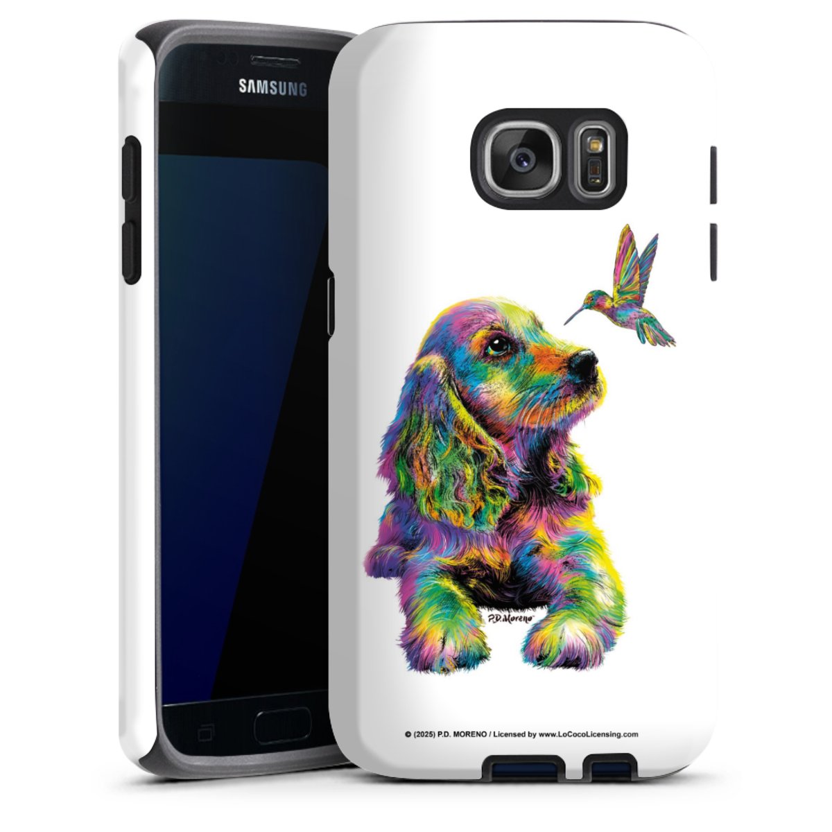 Bei dieser Handyhülle nutzen wird den besonders langlebigen Sublimationsdruck. Dieses raffinierte Druckverfahren sticht durch sein hochwertiges, gestochen scharfes Druckbild in brillanten Farben hervor. Der Druckbereich umfasst die ganze Hartschale inklusive der Ecken und Kanten, lediglich der Silikon-Einleger bleibt einfarbig schwarz. Wähle für Dein Design entweder eines unserer exklusiven Shop-Motive, oder werde kreativ und gestalte Dein Wunschdesign zum Beispiel mit Fotos und Overlays selbst.