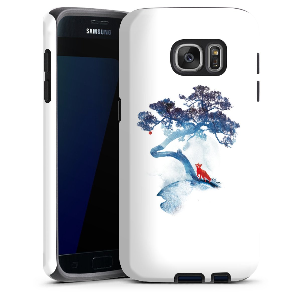 Bei dieser Handyhülle nutzen wird den besonders langlebigen Sublimationsdruck. Dieses raffinierte Druckverfahren sticht durch sein hochwertiges, gestochen scharfes Druckbild in brillanten Farben hervor. Der Druckbereich umfasst die ganze Hartschale inklusive der Ecken und Kanten, lediglich der Silikon-Einleger bleibt einfarbig schwarz. Wähle für Dein Design entweder eines unserer exklusiven Shop-Motive, oder werde kreativ und gestalte Dein Wunschdesign zum Beispiel mit Fotos und Overlays selbst.