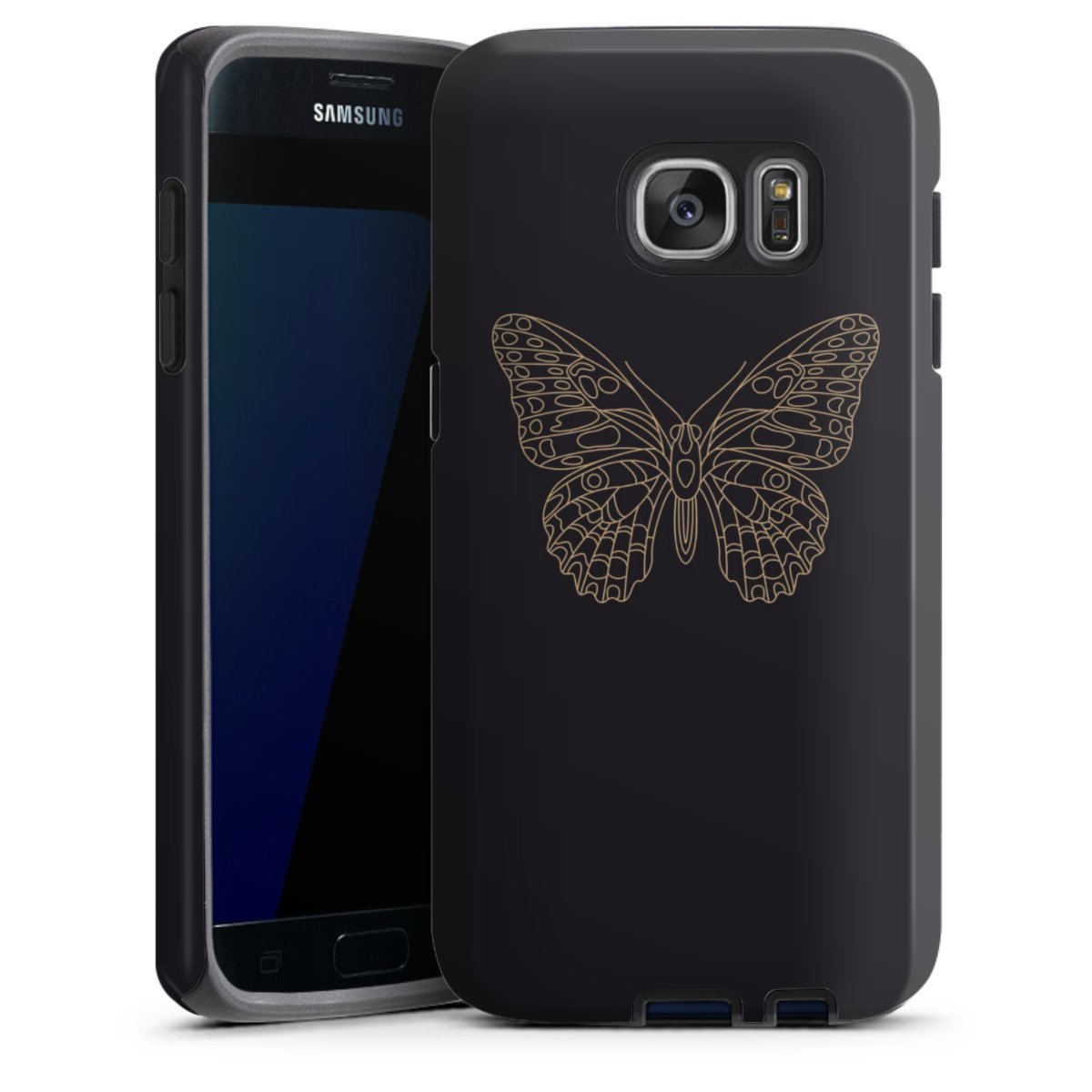 Bei dieser Handyhülle nutzen wird den besonders langlebigen Sublimationsdruck. Dieses raffinierte Druckverfahren sticht durch sein hochwertiges, gestochen scharfes Druckbild in brillanten Farben hervor. Der Druckbereich umfasst die ganze Hartschale inklusive der Ecken und Kanten, lediglich der Silikon-Einleger bleibt einfarbig schwarz. Wähle für Dein Design entweder eines unserer exklusiven Shop-Motive, oder werde kreativ und gestalte Dein Wunschdesign zum Beispiel mit Fotos und Overlays selbst.