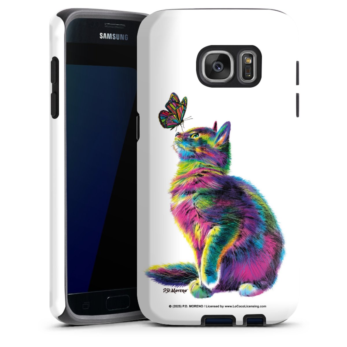Bei dieser Handyhülle nutzen wird den besonders langlebigen Sublimationsdruck. Dieses raffinierte Druckverfahren sticht durch sein hochwertiges, gestochen scharfes Druckbild in brillanten Farben hervor. Der Druckbereich umfasst die ganze Hartschale inklusive der Ecken und Kanten, lediglich der Silikon-Einleger bleibt einfarbig schwarz. Wähle für Dein Design entweder eines unserer exklusiven Shop-Motive, oder werde kreativ und gestalte Dein Wunschdesign zum Beispiel mit Fotos und Overlays selbst.