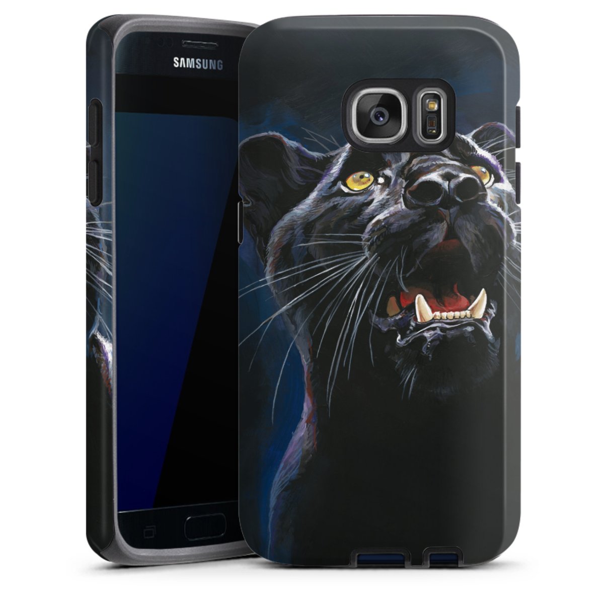 Bei dieser Handyhülle nutzen wird den besonders langlebigen Sublimationsdruck. Dieses raffinierte Druckverfahren sticht durch sein hochwertiges, gestochen scharfes Druckbild in brillanten Farben hervor. Der Druckbereich umfasst die ganze Hartschale inklusive der Ecken und Kanten, lediglich der Silikon-Einleger bleibt einfarbig schwarz. Wähle für Dein Design entweder eines unserer exklusiven Shop-Motive, oder werde kreativ und gestalte Dein Wunschdesign zum Beispiel mit Fotos und Overlays selbst.