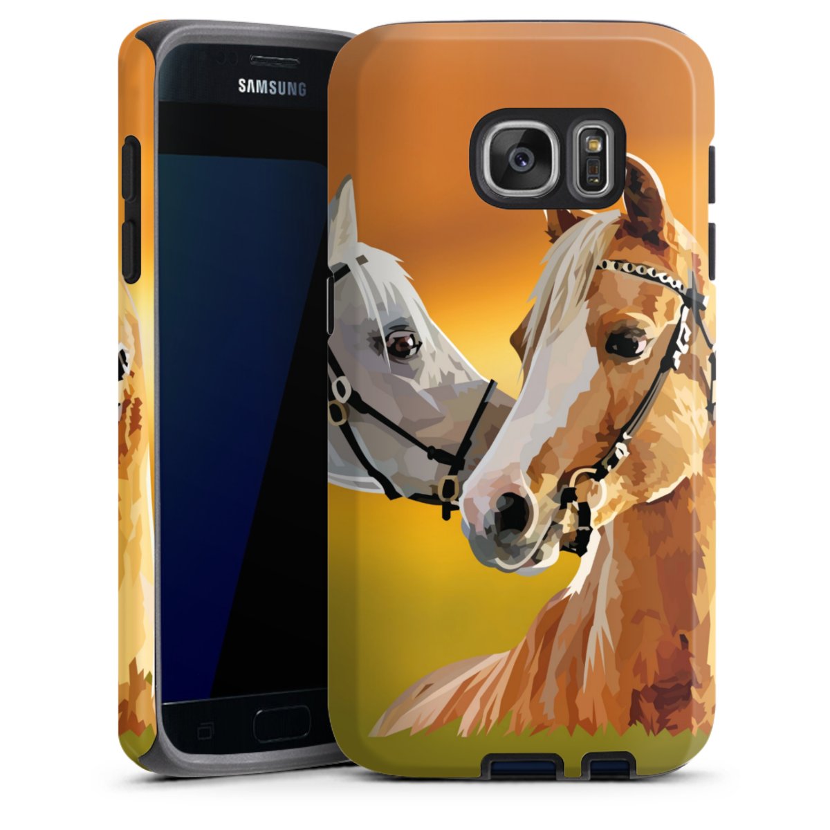 Bei dieser Handyhülle nutzen wird den besonders langlebigen Sublimationsdruck. Dieses raffinierte Druckverfahren sticht durch sein hochwertiges, gestochen scharfes Druckbild in brillanten Farben hervor. Der Druckbereich umfasst die ganze Hartschale inklusive der Ecken und Kanten, lediglich der Silikon-Einleger bleibt einfarbig schwarz. Wähle für Dein Design entweder eines unserer exklusiven Shop-Motive, oder werde kreativ und gestalte Dein Wunschdesign zum Beispiel mit Fotos und Overlays selbst.