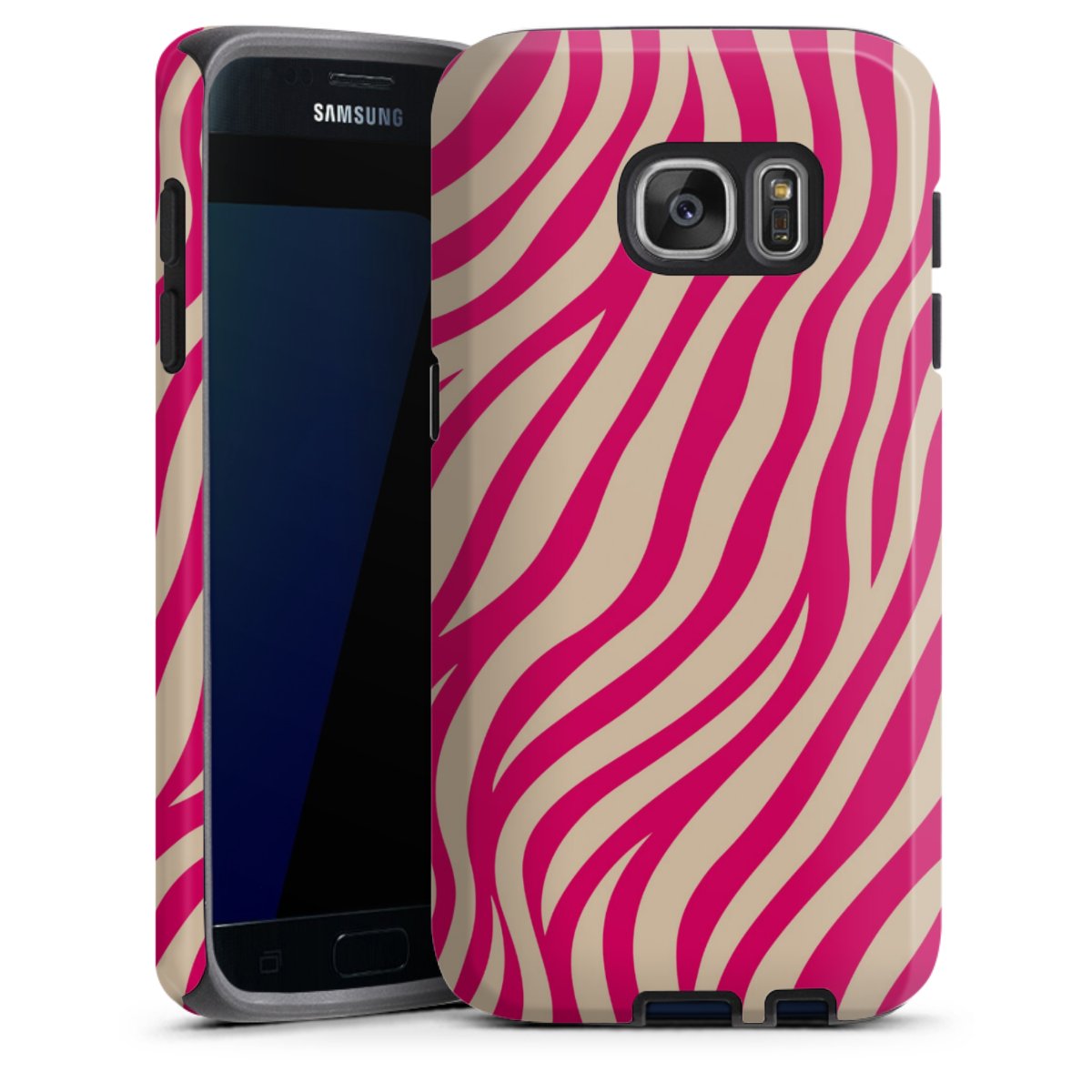 Bei dieser Handyhülle nutzen wird den besonders langlebigen Sublimationsdruck. Dieses raffinierte Druckverfahren sticht durch sein hochwertiges, gestochen scharfes Druckbild in brillanten Farben hervor. Der Druckbereich umfasst die ganze Hartschale inklusive der Ecken und Kanten, lediglich der Silikon-Einleger bleibt einfarbig schwarz. Wähle für Dein Design entweder eines unserer exklusiven Shop-Motive, oder werde kreativ und gestalte Dein Wunschdesign zum Beispiel mit Fotos und Overlays selbst.