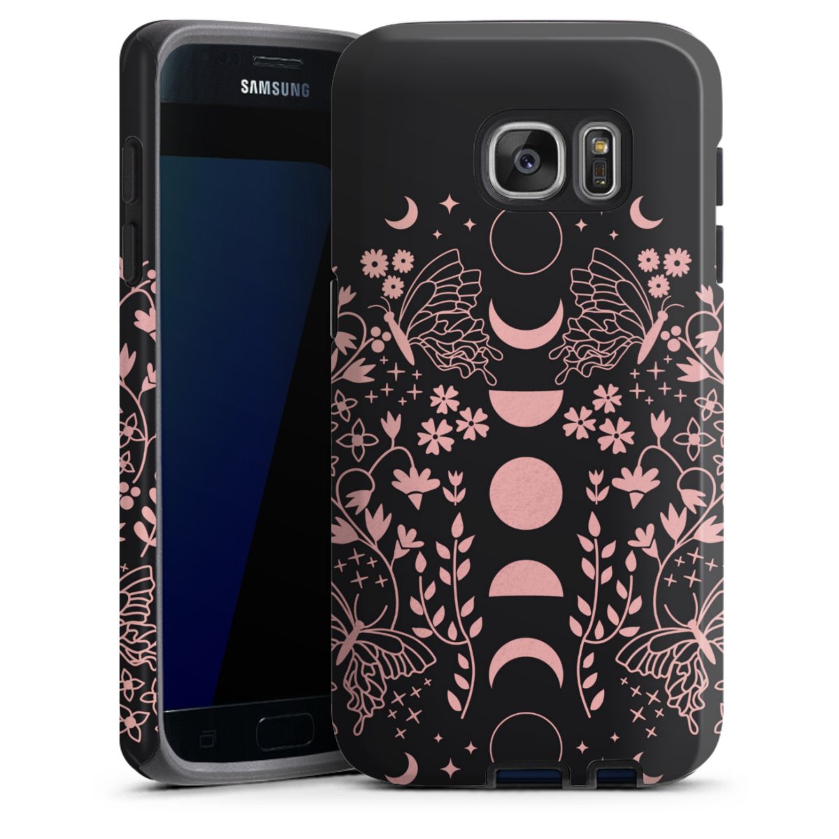 Bei dieser Handyhülle nutzen wird den besonders langlebigen Sublimationsdruck. Dieses raffinierte Druckverfahren sticht durch sein hochwertiges, gestochen scharfes Druckbild in brillanten Farben hervor. Der Druckbereich umfasst die ganze Hartschale inklusive der Ecken und Kanten, lediglich der Silikon-Einleger bleibt einfarbig schwarz. Wähle für Dein Design entweder eines unserer exklusiven Shop-Motive, oder werde kreativ und gestalte Dein Wunschdesign zum Beispiel mit Fotos und Overlays selbst.