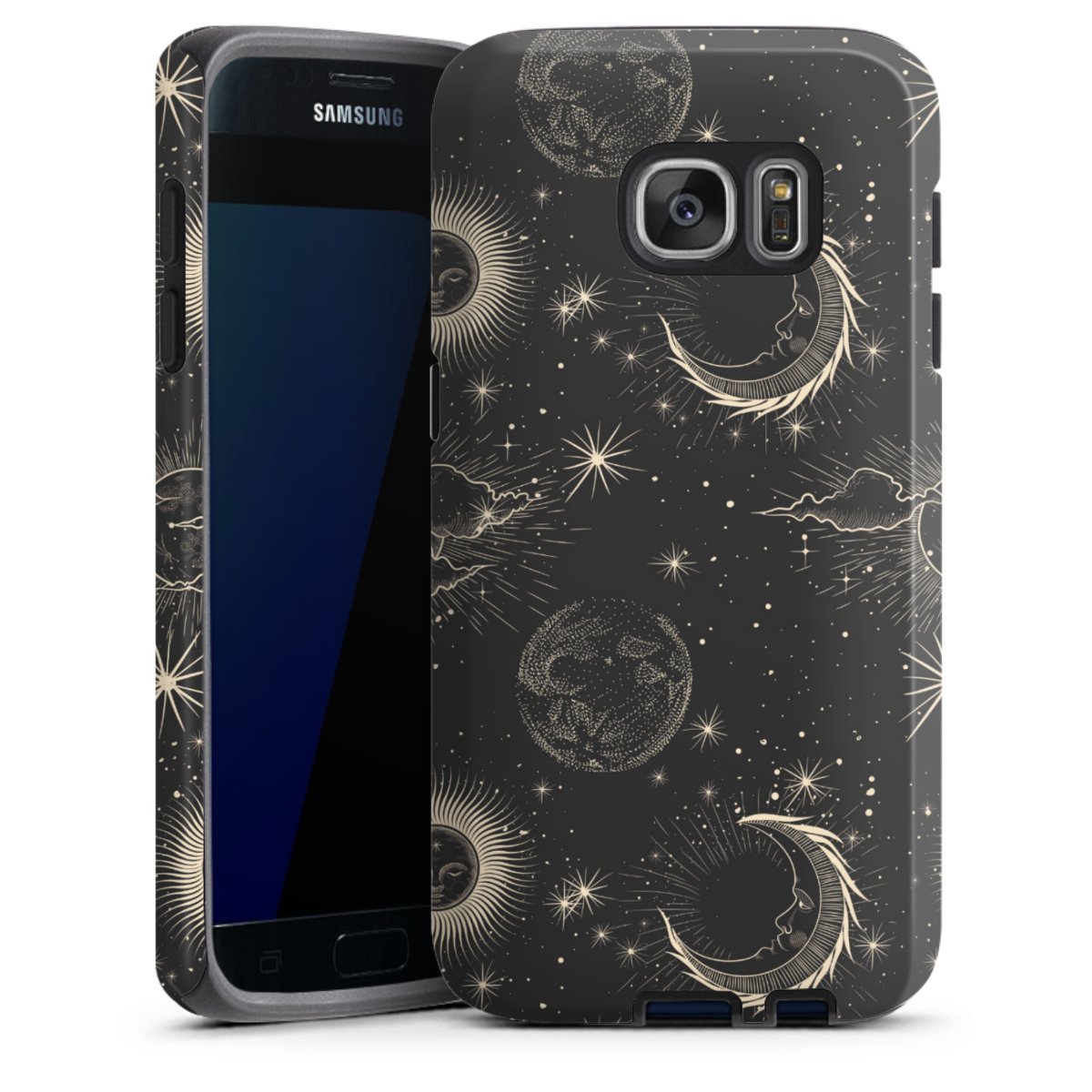 Bei dieser Handyhülle nutzen wird den besonders langlebigen Sublimationsdruck. Dieses raffinierte Druckverfahren sticht durch sein hochwertiges, gestochen scharfes Druckbild in brillanten Farben hervor. Der Druckbereich umfasst die ganze Hartschale inklusive der Ecken und Kanten, lediglich der Silikon-Einleger bleibt einfarbig schwarz. Wähle für Dein Design entweder eines unserer exklusiven Shop-Motive, oder werde kreativ und gestalte Dein Wunschdesign zum Beispiel mit Fotos und Overlays selbst.