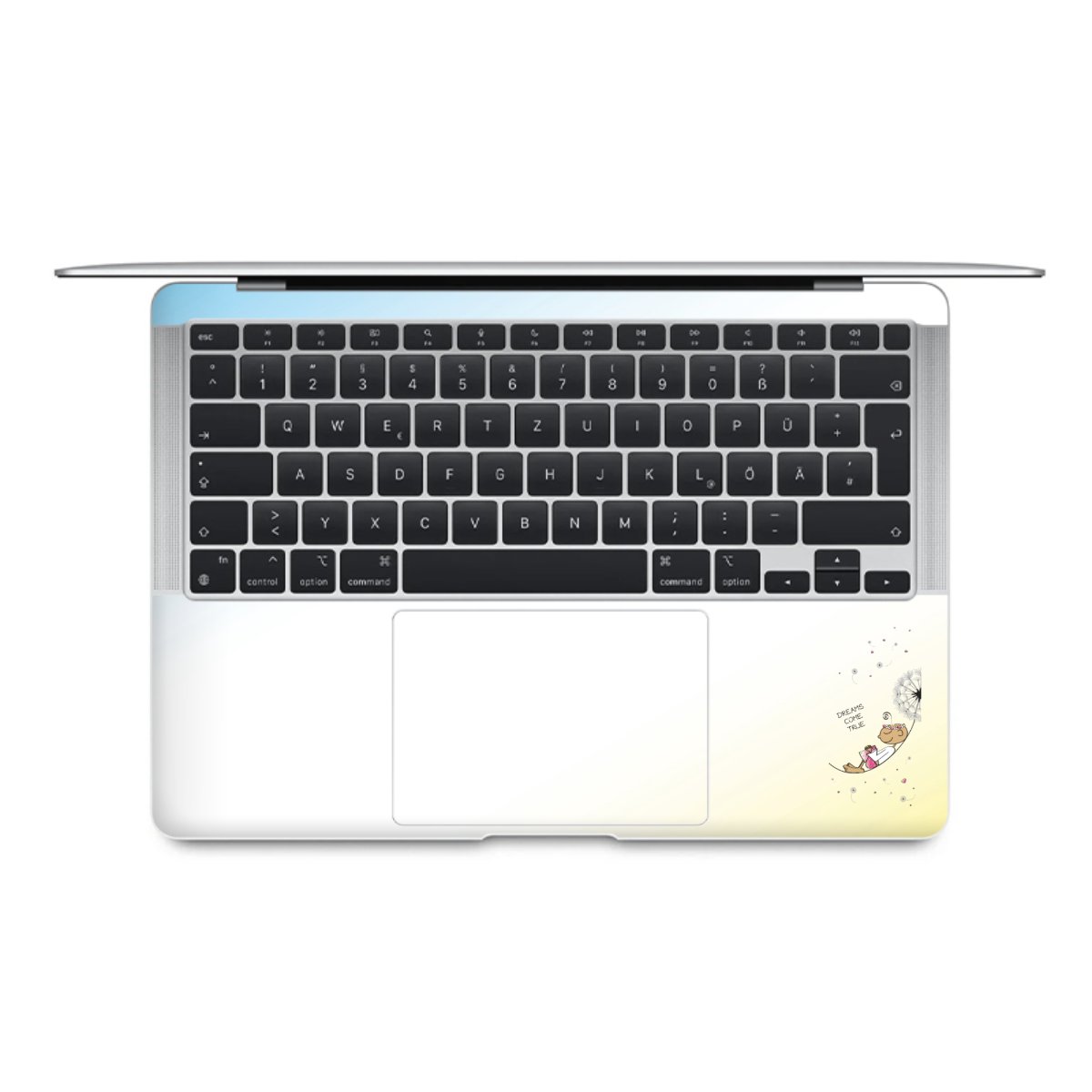Die langlebige Premium Vinyl-Folie wird durch ein mattes Schutzlaminat verstärkt und hält somit Deinen Laptop, egal ob Rückseite oder Tastatur frei von Kratzern. Die Premium-Folie ist hauchdünn und trägt kaum auf. Die Grundfarbe der DesignSkins® ist weiß.