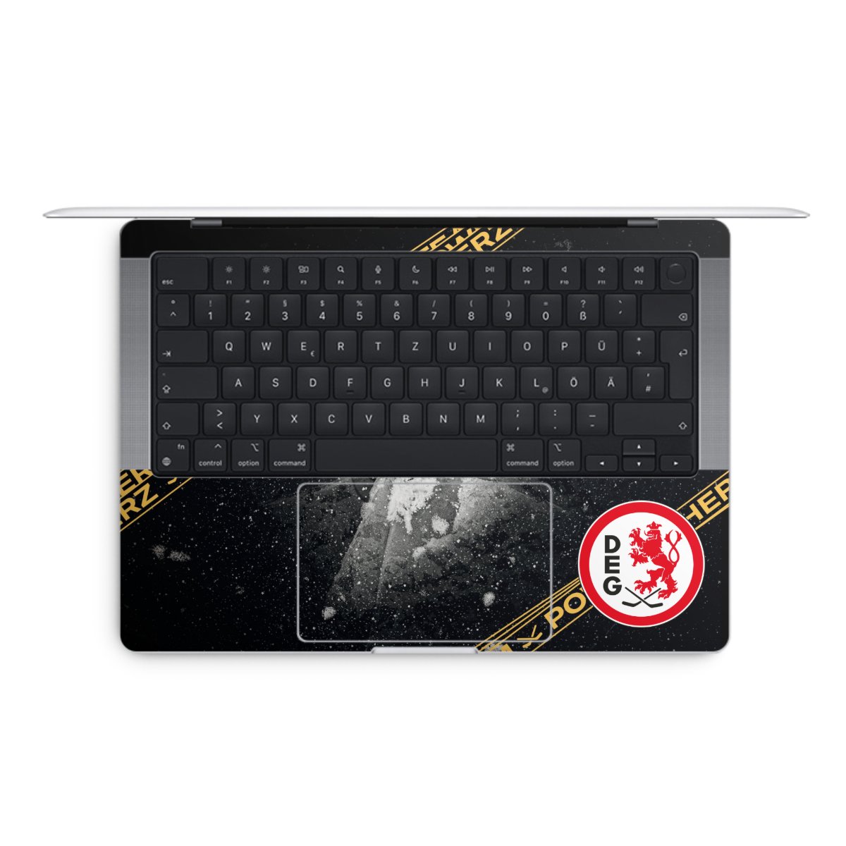 Die langlebige Premium Vinyl-Folie wird durch ein mattes Schutzlaminat verstärkt und hält somit Deinen Laptop, egal ob Rückseite oder Tastatur frei von Kratzern. Die Premium-Folie ist hauchdünn und trägt kaum auf. Die Grundfarbe der DesignSkins® ist weiß.