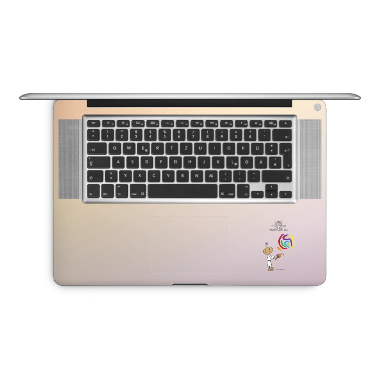 Die langlebige Premium Vinyl-Folie wird durch ein mattes Schutzlaminat verstärkt und hält somit Deinen Laptop, egal ob Rückseite oder Tastatur frei von Kratzern. Die Premium-Folie ist hauchdünn und trägt kaum auf. Die Grundfarbe der DesignSkins® ist weiß.