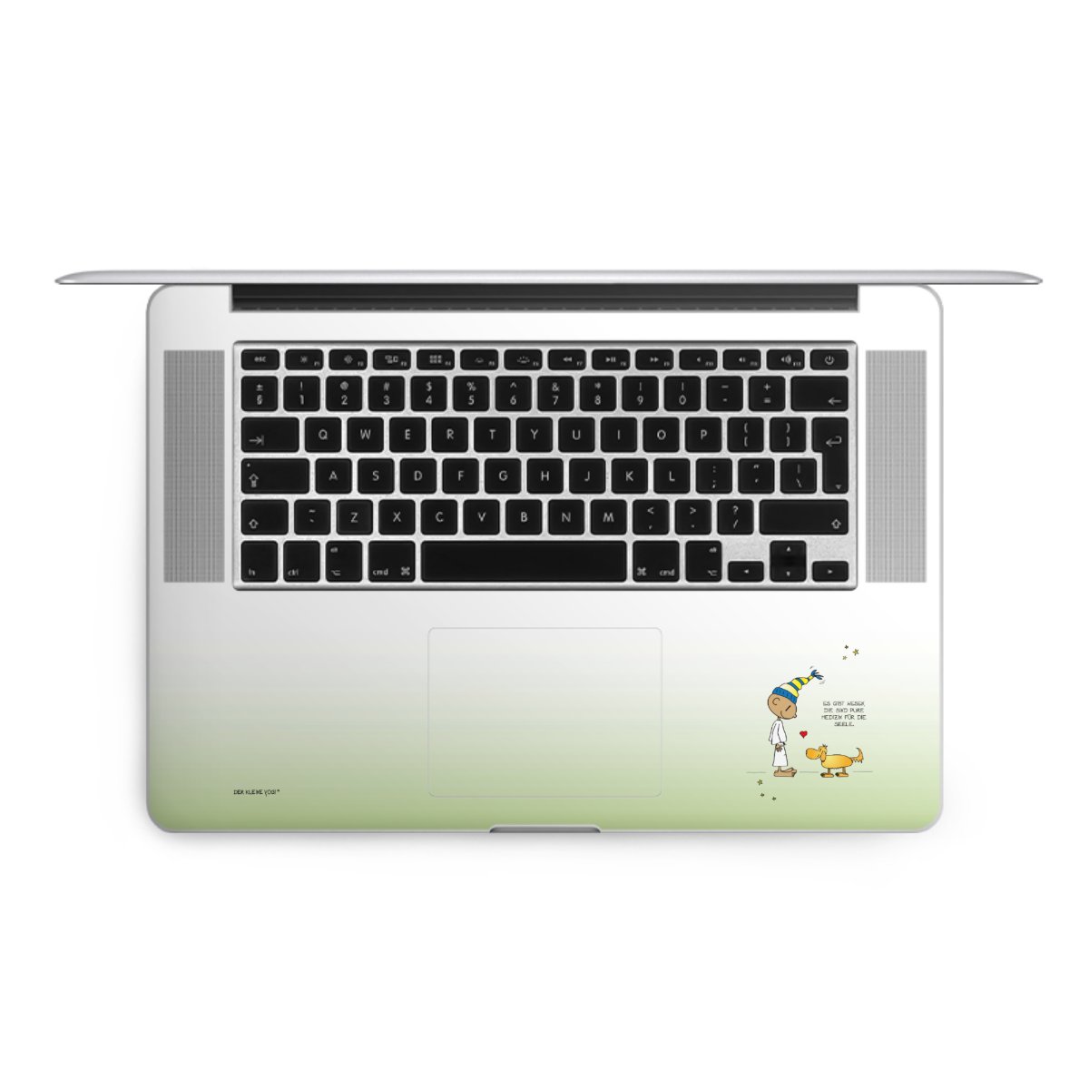 Die langlebige Premium Vinyl-Folie wird durch ein mattes Schutzlaminat verstärkt und hält somit Deinen Laptop, egal ob Rückseite oder Tastatur frei von Kratzern. Die Premium-Folie ist hauchdünn und trägt kaum auf. Die Grundfarbe der DesignSkins® ist weiß.