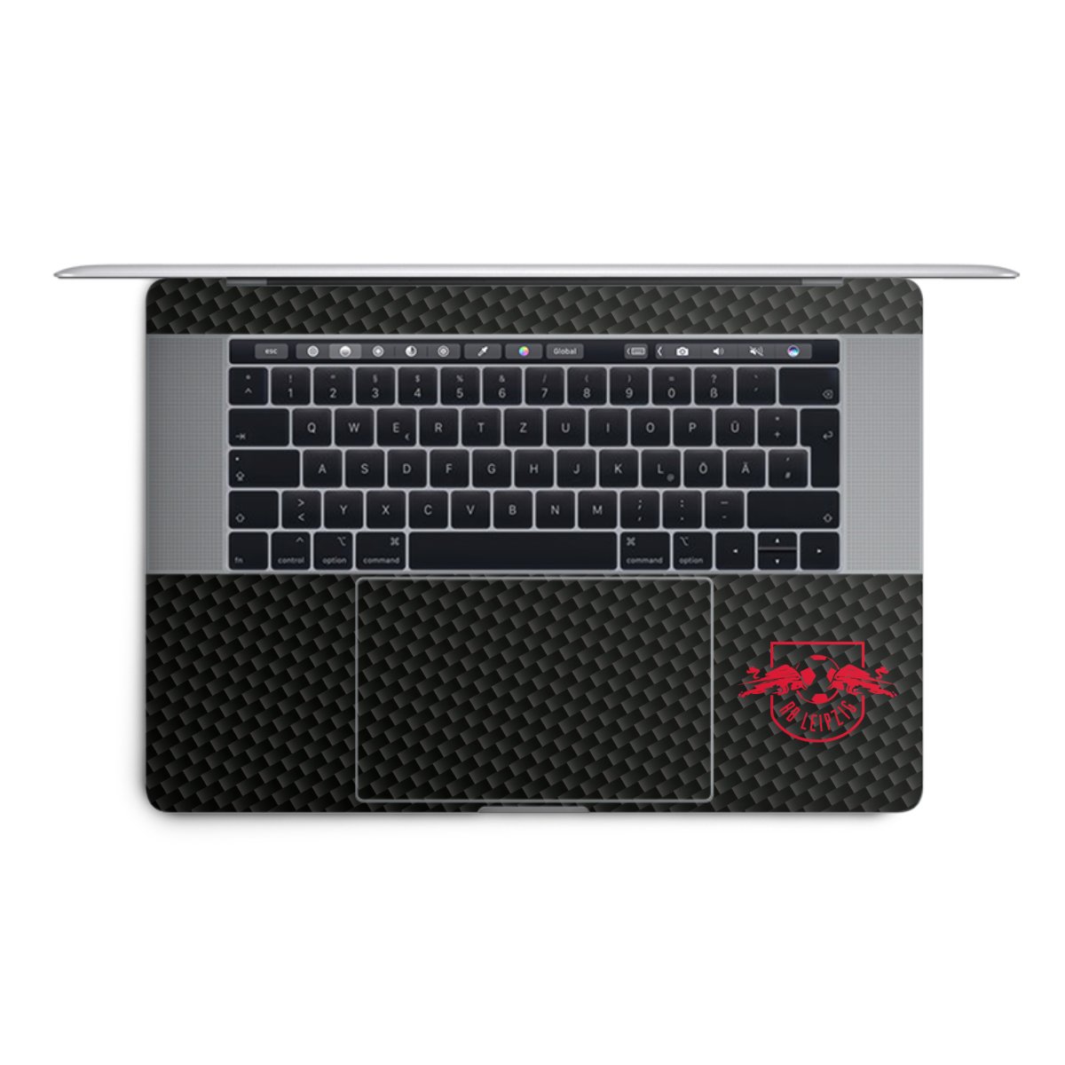 Rotes RB Leipzig Logo auf Carbonoptik