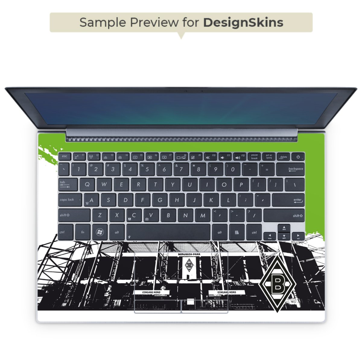 Die langlebige Premium Vinyl-Folie wird durch ein mattes Schutzlaminat verstärkt und hält somit Deinen Laptop, egal ob Rückseite oder Tastatur frei von Kratzern. Die Premium-Folie ist hauchdünn und trägt kaum auf. Die Grundfarbe der DesignSkins® ist weiß.