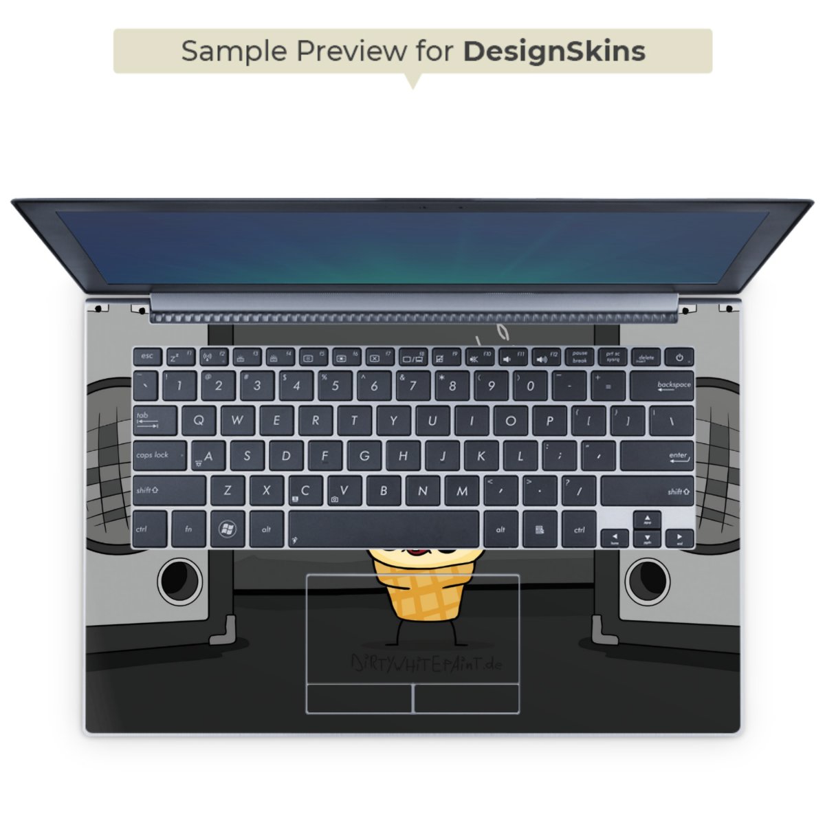 Die langlebige Premium Vinyl-Folie wird durch ein mattes Schutzlaminat verstärkt und hält somit Deinen Laptop, egal ob Rückseite oder Tastatur frei von Kratzern. Die Premium-Folie ist hauchdünn und trägt kaum auf. Die Grundfarbe der DesignSkins® ist weiß.