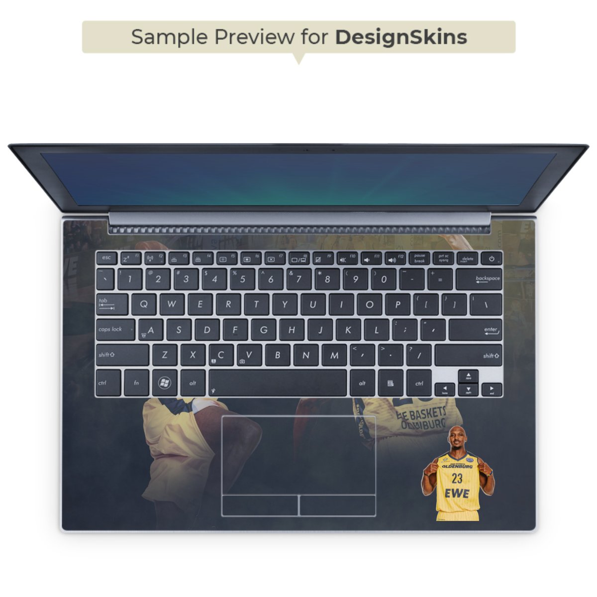 Die langlebige Premium Vinyl-Folie wird durch ein mattes Schutzlaminat verstärkt und hält somit Deinen Laptop, egal ob Rückseite oder Tastatur frei von Kratzern. Die Premium-Folie ist hauchdünn und trägt kaum auf. Die Grundfarbe der DesignSkins® ist weiß.