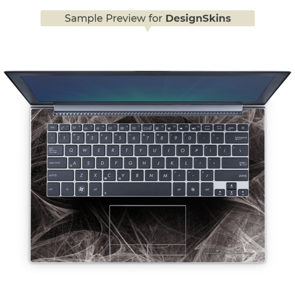 Die langlebige Premium Vinyl-Folie wird durch ein mattes Schutzlaminat verstärkt und hält somit Deinen Laptop, egal ob Rückseite oder Tastatur frei von Kratzern. Die Premium-Folie ist hauchdünn und trägt kaum auf. Die Grundfarbe der DesignSkins® ist weiß.