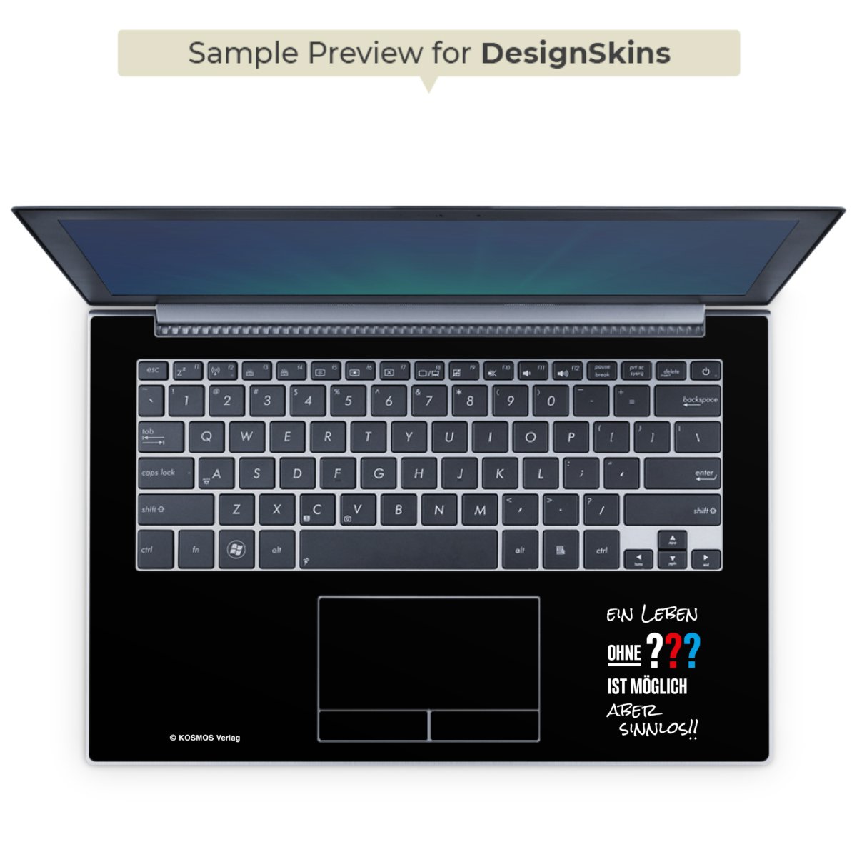 Die langlebige Premium Vinyl-Folie wird durch ein mattes Schutzlaminat verstärkt und hält somit Deinen Laptop, egal ob Rückseite oder Tastatur frei von Kratzern. Die Premium-Folie ist hauchdünn und trägt kaum auf. Die Grundfarbe der DesignSkins® ist weiß.