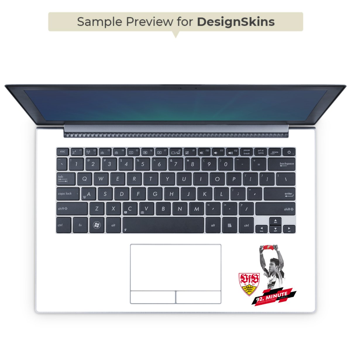 Die langlebige Premium Vinyl-Folie wird durch ein mattes Schutzlaminat verstärkt und hält somit Deinen Laptop, egal ob Rückseite oder Tastatur frei von Kratzern. Die Premium-Folie ist hauchdünn und trägt kaum auf. Die Grundfarbe der DesignSkins® ist weiß.
