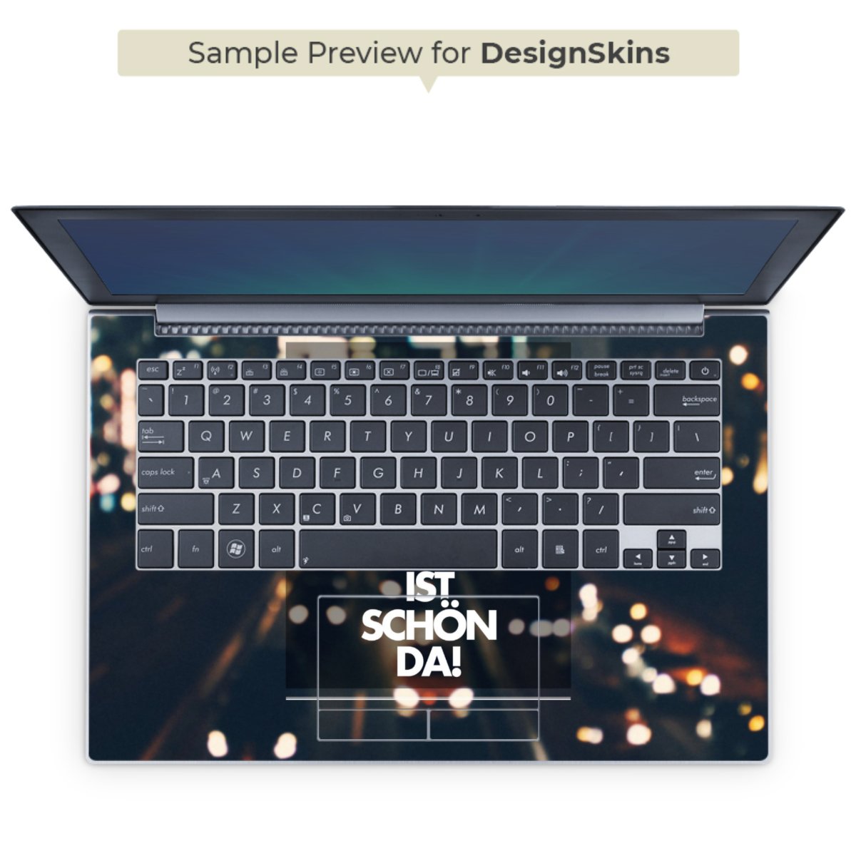 Die langlebige Premium Vinyl-Folie wird durch ein mattes Schutzlaminat verstärkt und hält somit Deinen Laptop, egal ob Rückseite oder Tastatur frei von Kratzern. Die Premium-Folie ist hauchdünn und trägt kaum auf. Die Grundfarbe der DesignSkins® ist weiß.
