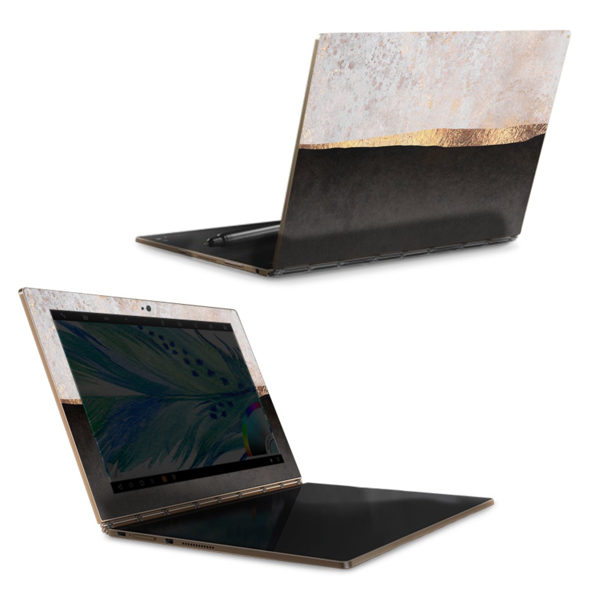 Die langlebige Premium Vinyl-Folie wird durch ein mattes Schutzlaminat verstärkt und hält somit Deinen Laptop, egal ob Rückseite oder Tastatur frei von Kratzern. Die Premium-Folie ist hauchdünn und trägt kaum auf. Die Grundfarbe der DesignSkins® ist weiß.
