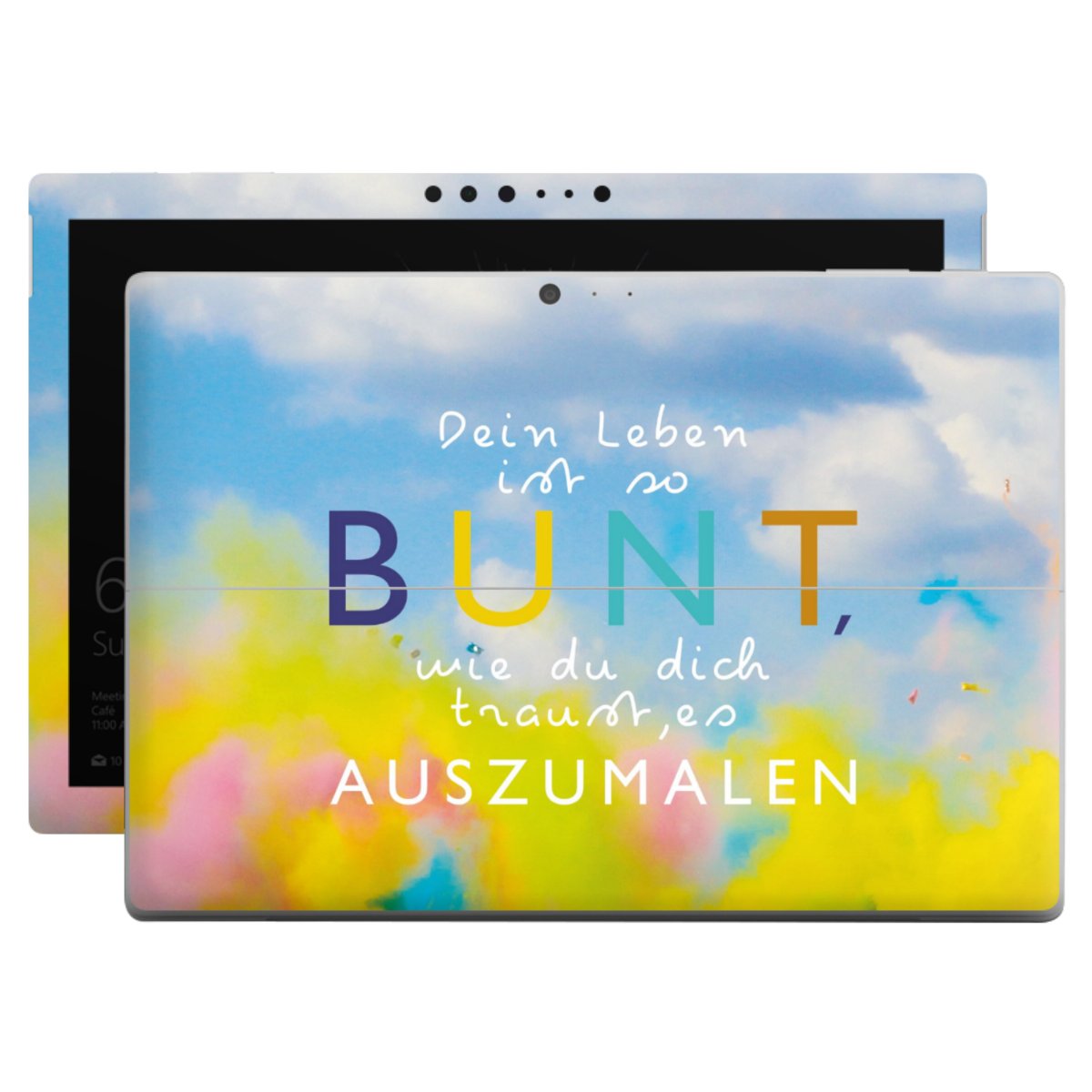 Die langlebige Premium Vinyl-Folie wird durch ein mattes Schutzlaminat verstärkt und hält somit Deinen Laptop, egal ob Rückseite oder Tastatur frei von Kratzern. Die Premium-Folie ist hauchdünn und trägt kaum auf. Die Grundfarbe der DesignSkins® ist weiß.