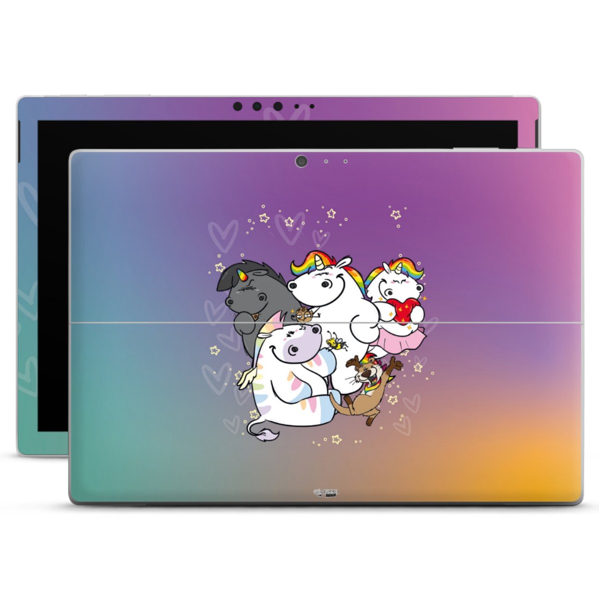 Mit den neuen Motiven des Kulteinhorns und den magischen Wesen aus der Glitzerwelt kannst Du Deine Alltagsbegleiter wie Dein Handy, Laptop oder Deine Spielekonsole bunt färben und eine extra Portion Freude verbreiten. Jeder Charakter hat seine individuellen Eigenarten und vertritt besondere Werte, wie Toleranz, Akzeptanz, Durchhaltevermögen und viele andere.