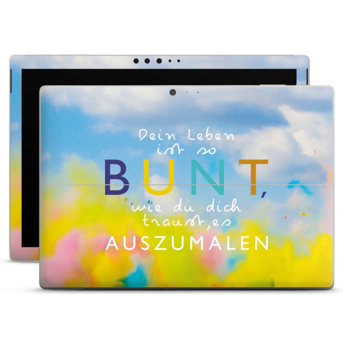 Die langlebige Premium Vinyl-Folie wird durch ein mattes Schutzlaminat verstärkt und hält somit Deinen Laptop, egal ob Rückseite oder Tastatur frei von Kratzern. Die Premium-Folie ist hauchdünn und trägt kaum auf. Die Grundfarbe der DesignSkins® ist weiß.