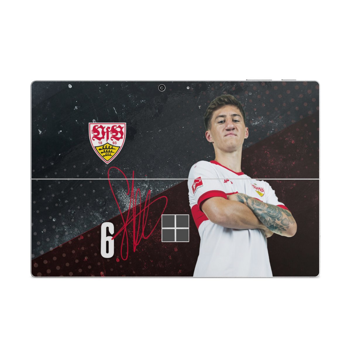 Das Vereinswappen des VfB Stuttgart auf der eigenen Hülle