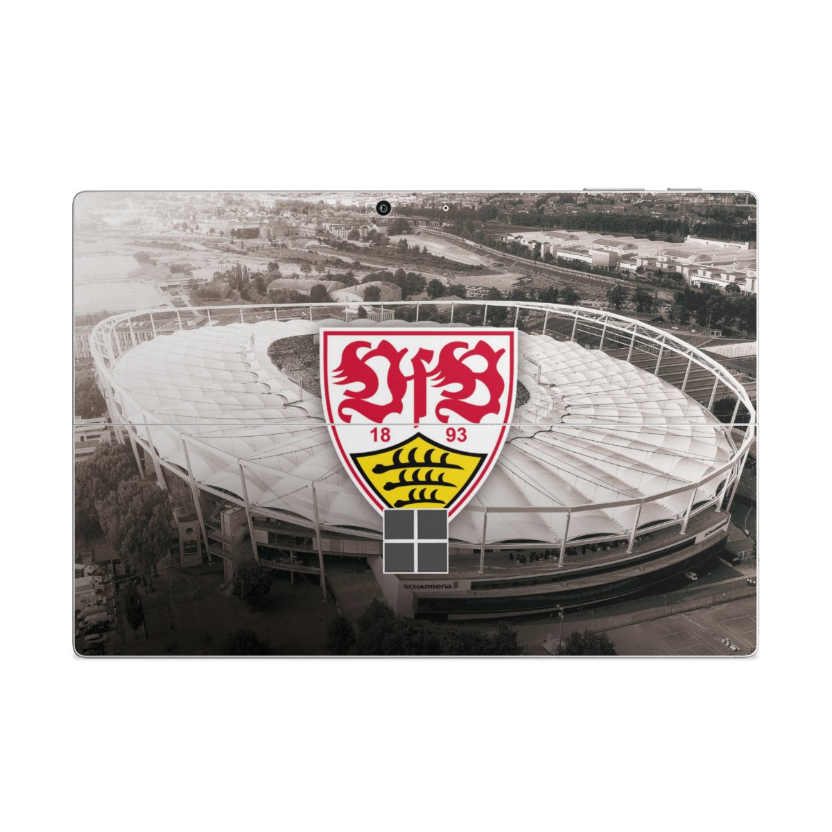 Das Vereinswappen des VfB Stuttgart auf der eigenen Hülle