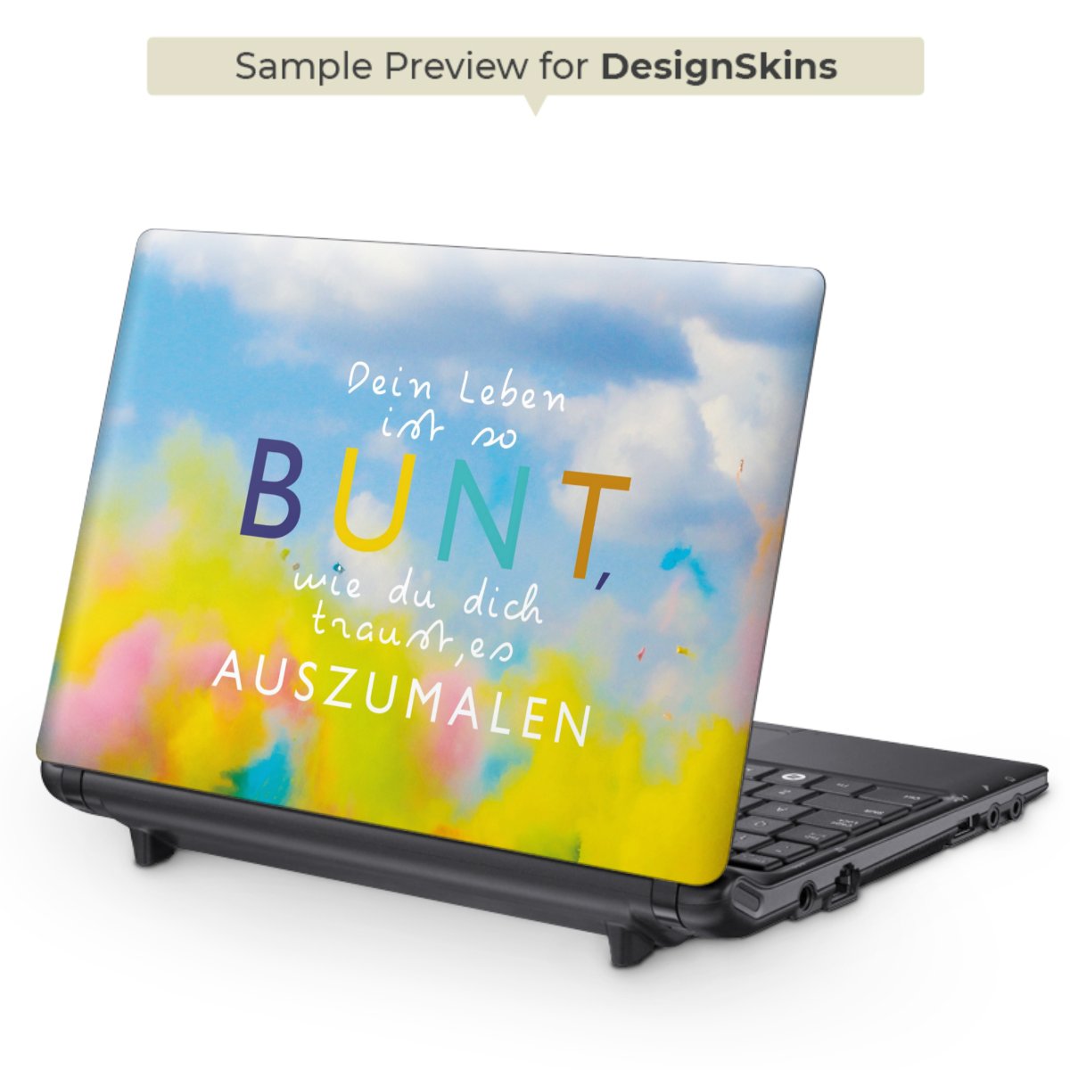 Die langlebige Premium Vinyl-Folie wird durch ein mattes Schutzlaminat verstärkt und hält somit Deinen Laptop, egal ob Rückseite oder Tastatur frei von Kratzern. Die Premium-Folie ist hauchdünn und trägt kaum auf. Die Grundfarbe der DesignSkins® ist weiß.