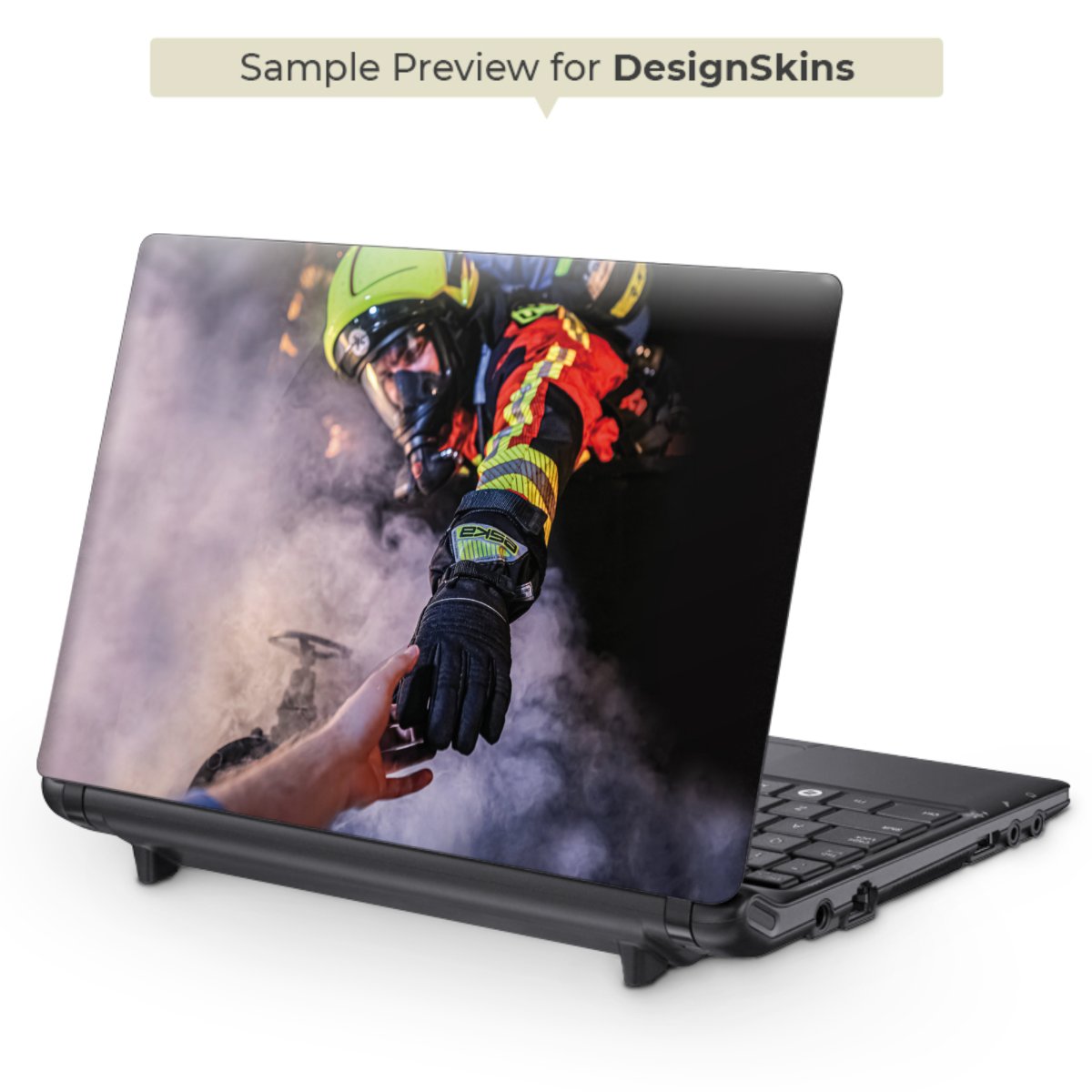 Feuerwehrmann greift nach der Hand
