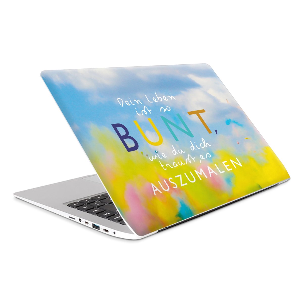 Die langlebige Premium Vinyl-Folie wird durch ein mattes Schutzlaminat verstärkt und hält somit Deinen Laptop, egal ob Rückseite oder Tastatur frei von Kratzern. Die Premium-Folie ist hauchdünn und trägt kaum auf. Die Grundfarbe der DesignSkins® ist weiß.