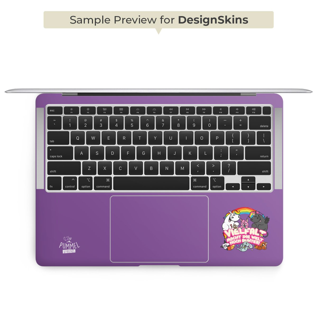 Die langlebige Premium Vinyl-Folie wird durch ein glänzendes Schutzlaminat verstärkt und hält somit Deinen Laptop, egal ob Rückseite oder Tastatur frei von Kratzern. Die Premium-Folie ist hauchdünn und trägt kaum auf. Die Grundfarbe der DesignSkins® ist weiß.
