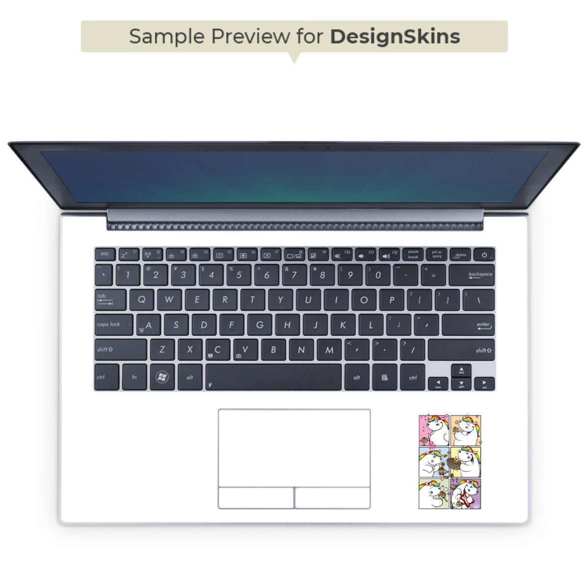 Die langlebige Premium Vinyl-Folie wird durch ein glänzendes Schutzlaminat verstärkt und hält somit Deinen Laptop, egal ob Rückseite oder Tastatur frei von Kratzern. Die Premium-Folie ist hauchdünn und trägt kaum auf. Die Grundfarbe der DesignSkins® ist weiß.