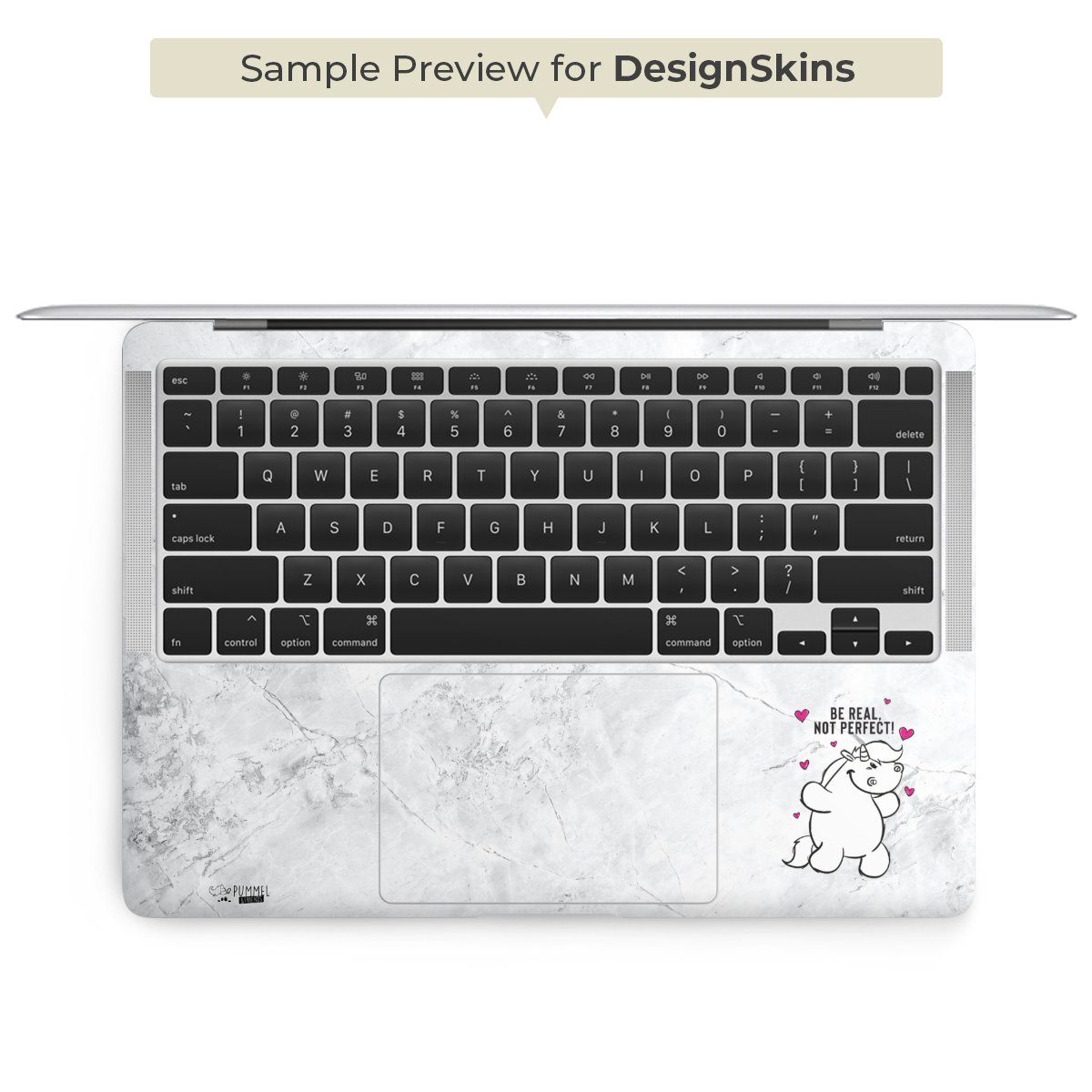 Die langlebige Premium Vinyl-Folie wird durch ein glänzendes Schutzlaminat verstärkt und hält somit Deinen Laptop, egal ob Rückseite oder Tastatur frei von Kratzern. Die Premium-Folie ist hauchdünn und trägt kaum auf. Die Grundfarbe der DesignSkins® ist weiß.